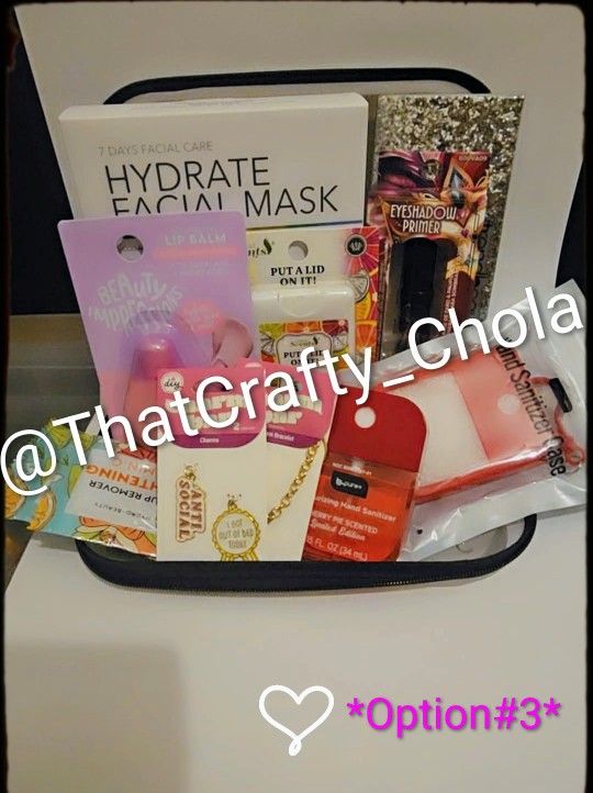 Grab your very own customized Boo box for Valentines day, or for a loved ones gift. Durable double zipper keeps all your must haves in one place. This large case also comes with ALL items shown in picture, plus I will create a vinyl sticker design to your liking. Serious buyer only for this one of a kind travel case. Willing to travel within a 10 mile radius of Claremont to deliver for an additional $10 fee. Shipping will be $10 additionally as well.