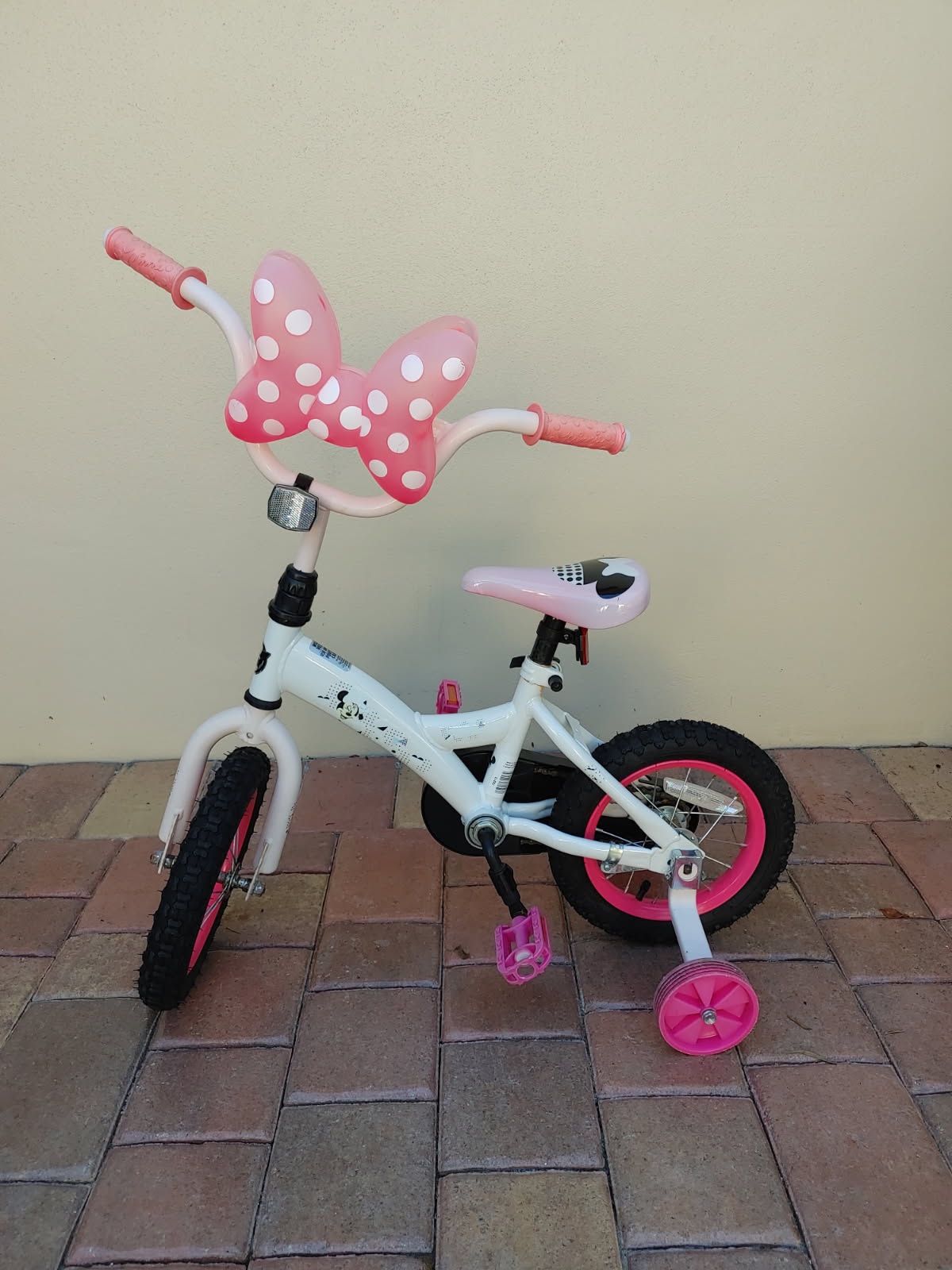 Up for sale is a preowned kids bicycle with training wheels. It is ready to ride. We are located in Tequesta. Check out our other items for sale. Thank you!