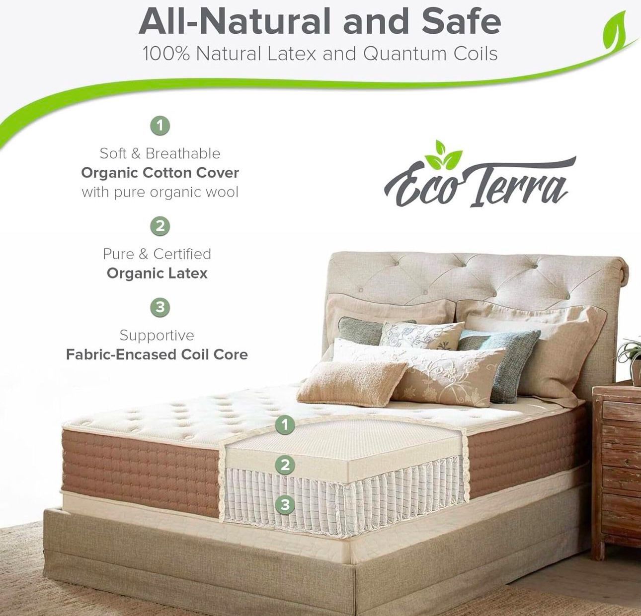 King Mattress King Natural Latex Hybrid Mattress 76” x 80” 11” thickness 127 lbs Eco terra Firmness Medium Retail: $1299 8 available