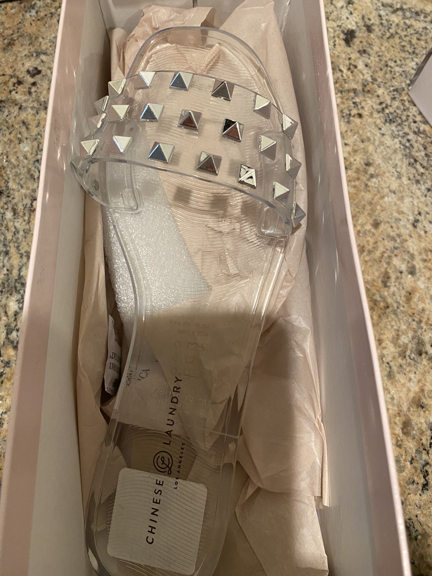 Size 9 Chinese Laundry new clear studded slides