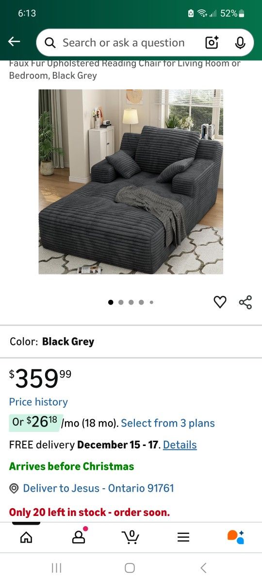 67'' Chaise Lounge Chair Indoor, Oversized Deep Seat Sofa Bed, Sleeper Couch with Ergonomic Pillows, Fluffy Faux Fur Upholstered Reading Chair for Living Room or Bedroom, Black Grey