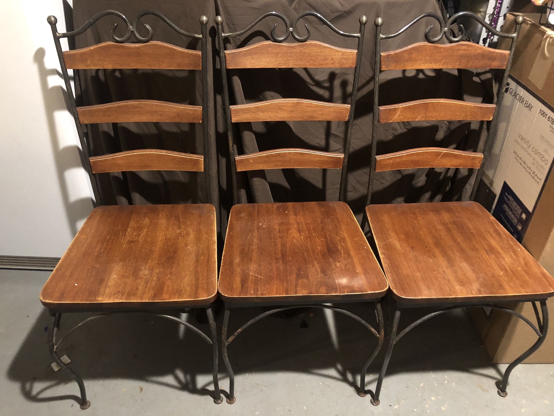 4 dinning room chairs wood and metal very good condition.