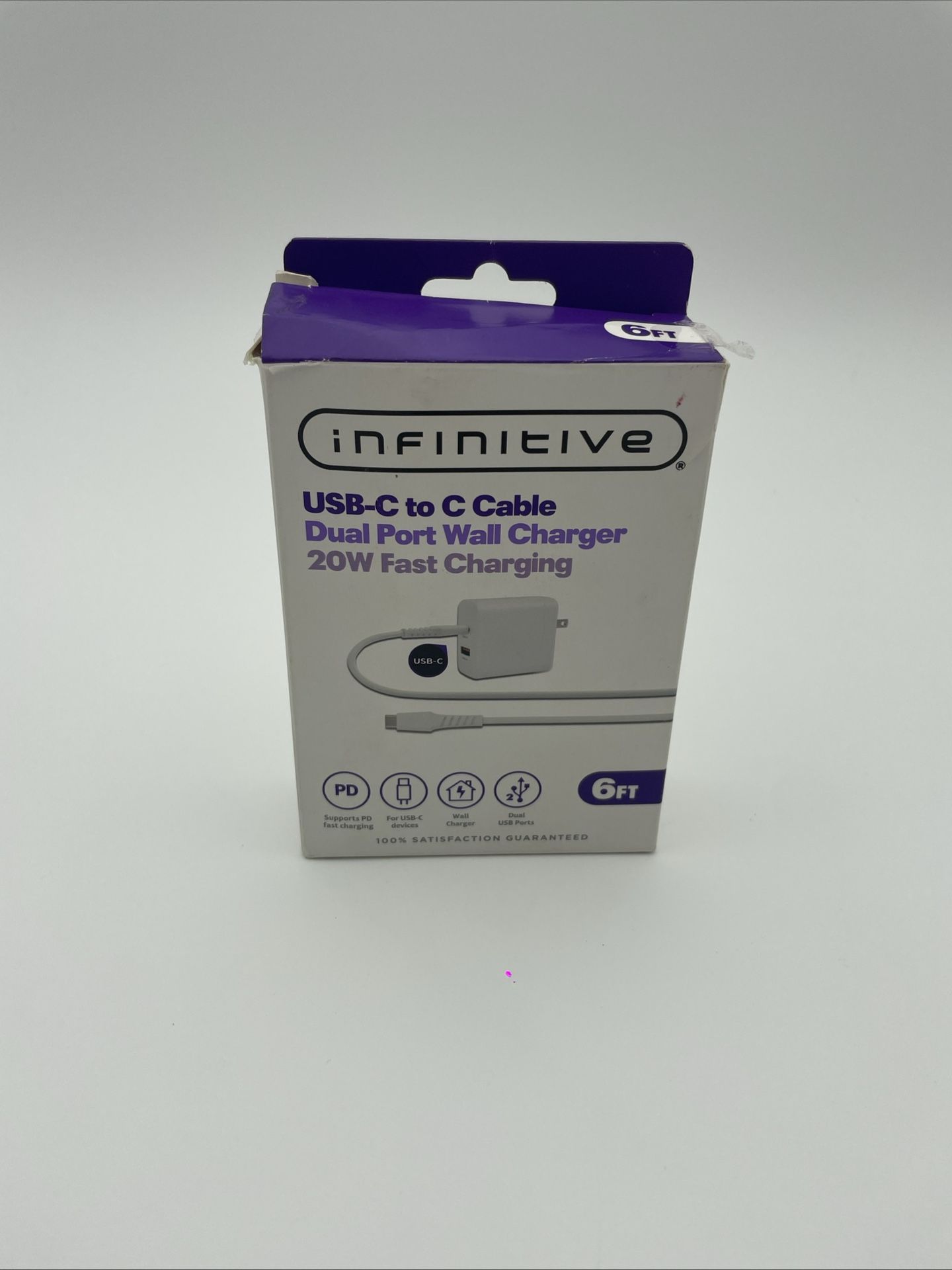 NEW IN BOX Infinitive USB-C to C Cable Dual Port Wall Charger with 20W Fast Charging capability! This complete charging solution includes both a dual-port wall adapter and a 6-foot USB-C to USB-C cable for maximum convenience. Key Features: • 20W Fast Charging: Power Delivery (PD) technology for rapid charging • Dual Port Design: Charge two devices simultaneously • 6-Foot Cable Length: Extra-long cable for flexible placement and use • USB-C to USB-C: Perfect for modern devices with USB-C ports • Wall Charger Included: Complete charging solution in one package • Universal Compatibility: Works with smartphones, tablets, laptops, and other USB-C devices • Compact Design: Space-efficient wall adapter • 100% Satisfaction Guaranteed: Backed by manufacturer guarantee Specifications: • Brand: Infinitive • Power Output: 20W Fast Charging • Cable Length: 6 feet • Connector Types: USB-C to USB-C • Ports: Dual USB ports on wall adapter • Technology: Power Delivery (PD) support • Color: White/Gray Perfect For: • Fast charging smartphones and tablets • Powering laptops and portable devices • Travel and home use • Office charging stations • Replacement for lost or damaged chargers • Anyone needing dual-device charging capability What’s Included: • Dual Port Wall Charger (20W) • USB-C to USB-C Cable (6 feet) • Original packaging This Infinitive charging kit provides everything you need for fast, efficient charging of your USB-C devices. The dual-port design allows you to charge multiple devices while the 20W power delivery ensures rapid charging speeds. Condition: Brand new in original retail packaging