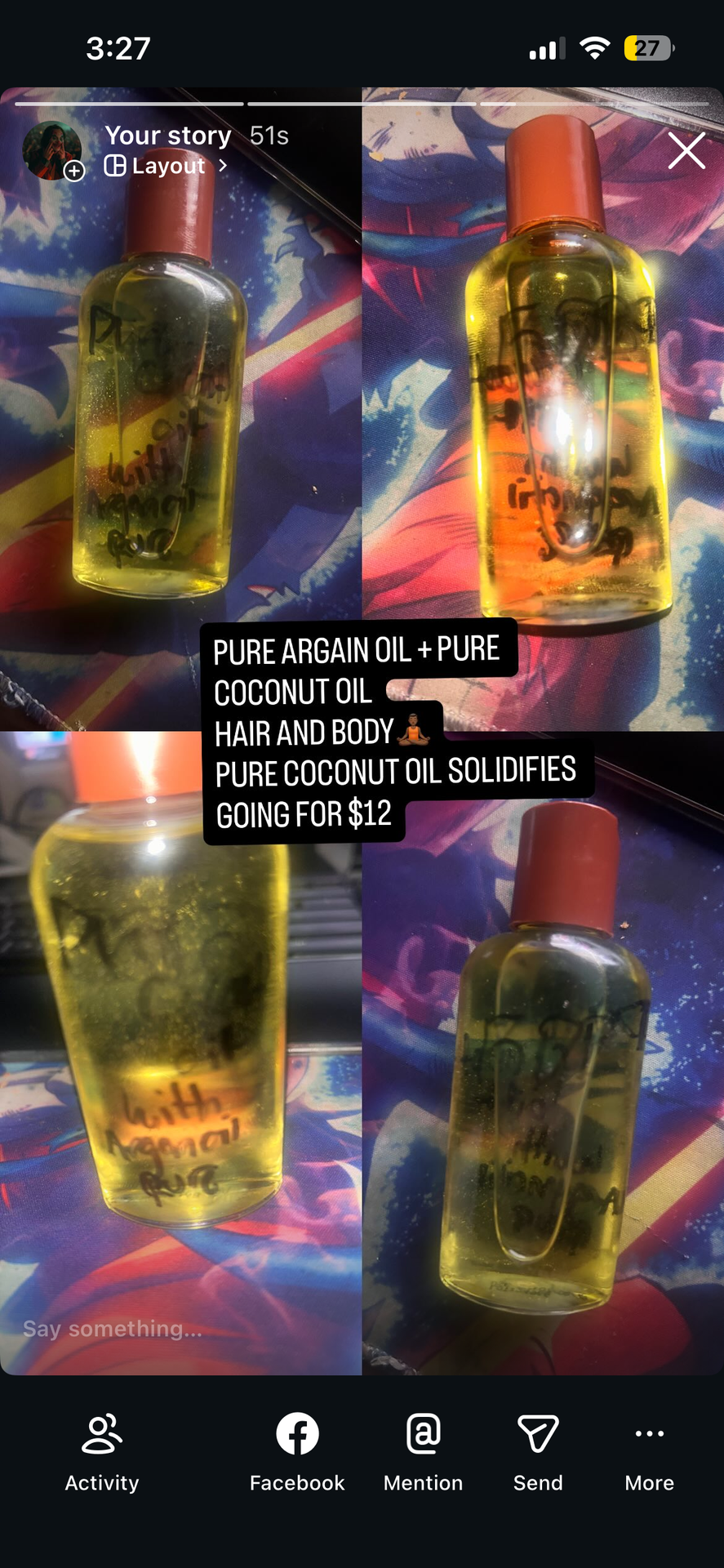 PURE ARGAN * PURE COCONUT OIL FOR HAIR AND BODY! PURE COONHT OIL SOLIDIFIES
