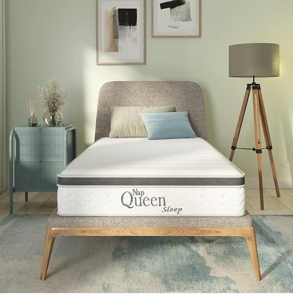 NapQueen 8 Inch Maxima Hybrid Mattress, Twin Size and Linenspa Folding Metal Platform Bed Frame Set