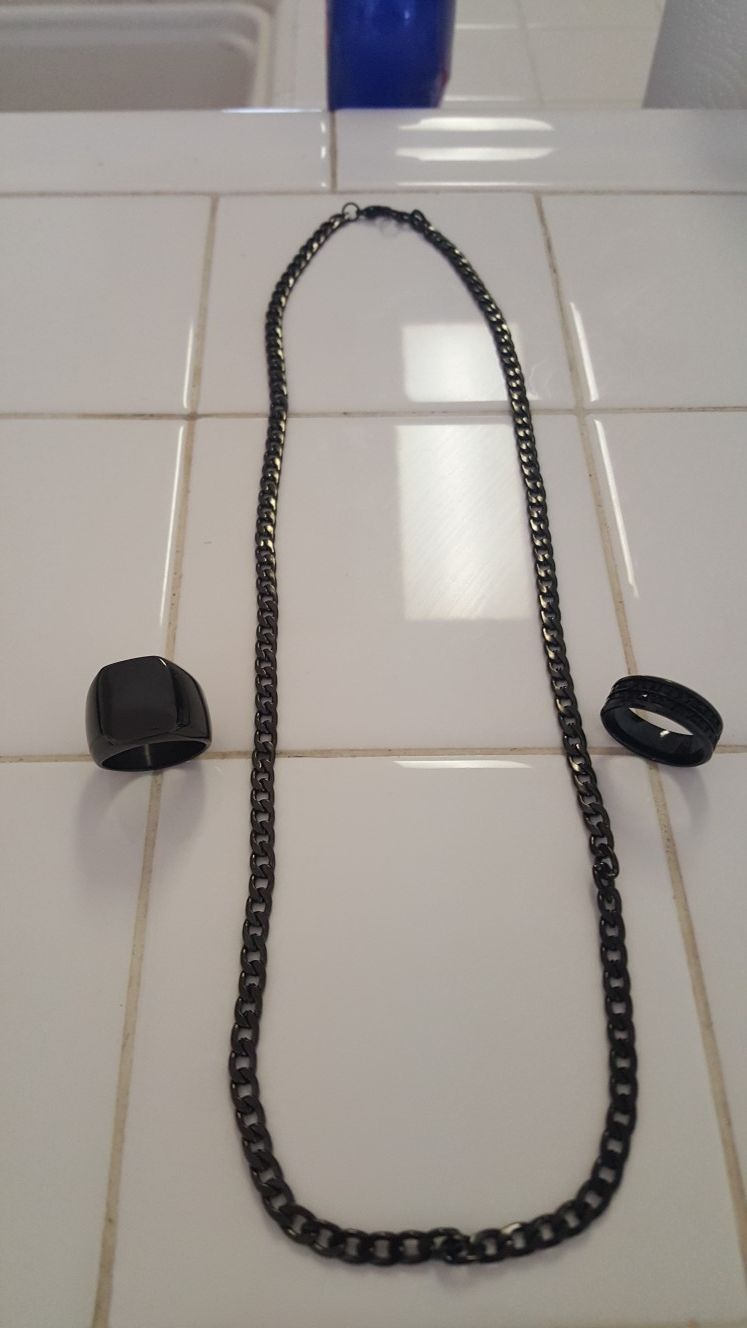 26 inch black chain men's black ring size 11 men's black wedding band size 10 altogether $60