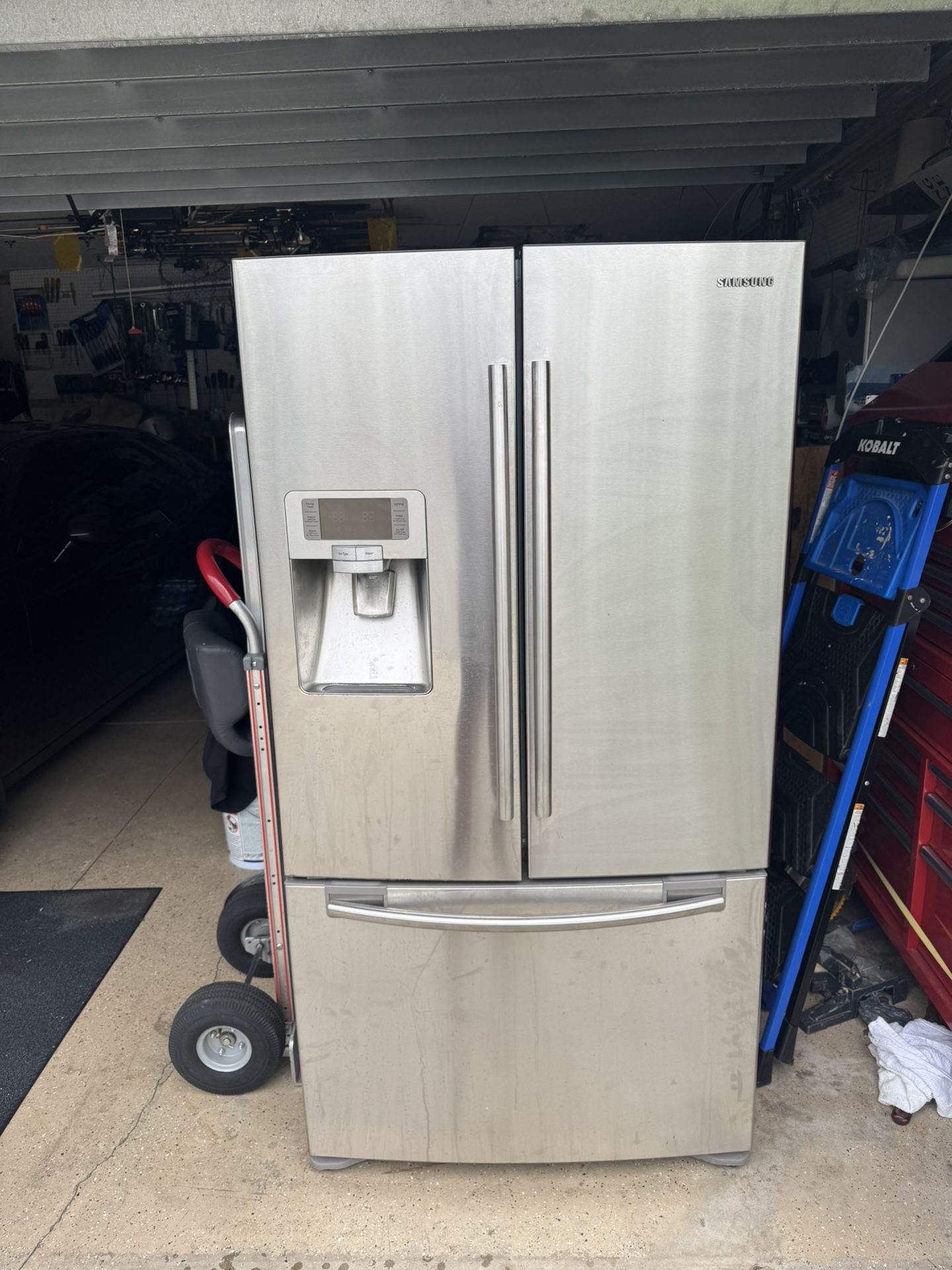 Samsung refrigerator with two doors and pullout freezer on the bottom. Good condition
