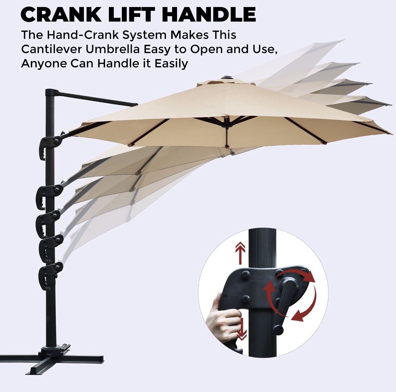 New Beige 10ft Cantilever Offset Patio Umbrella ROTATION 360 ° & TILTING- NOT INCLUDED WEIGTH