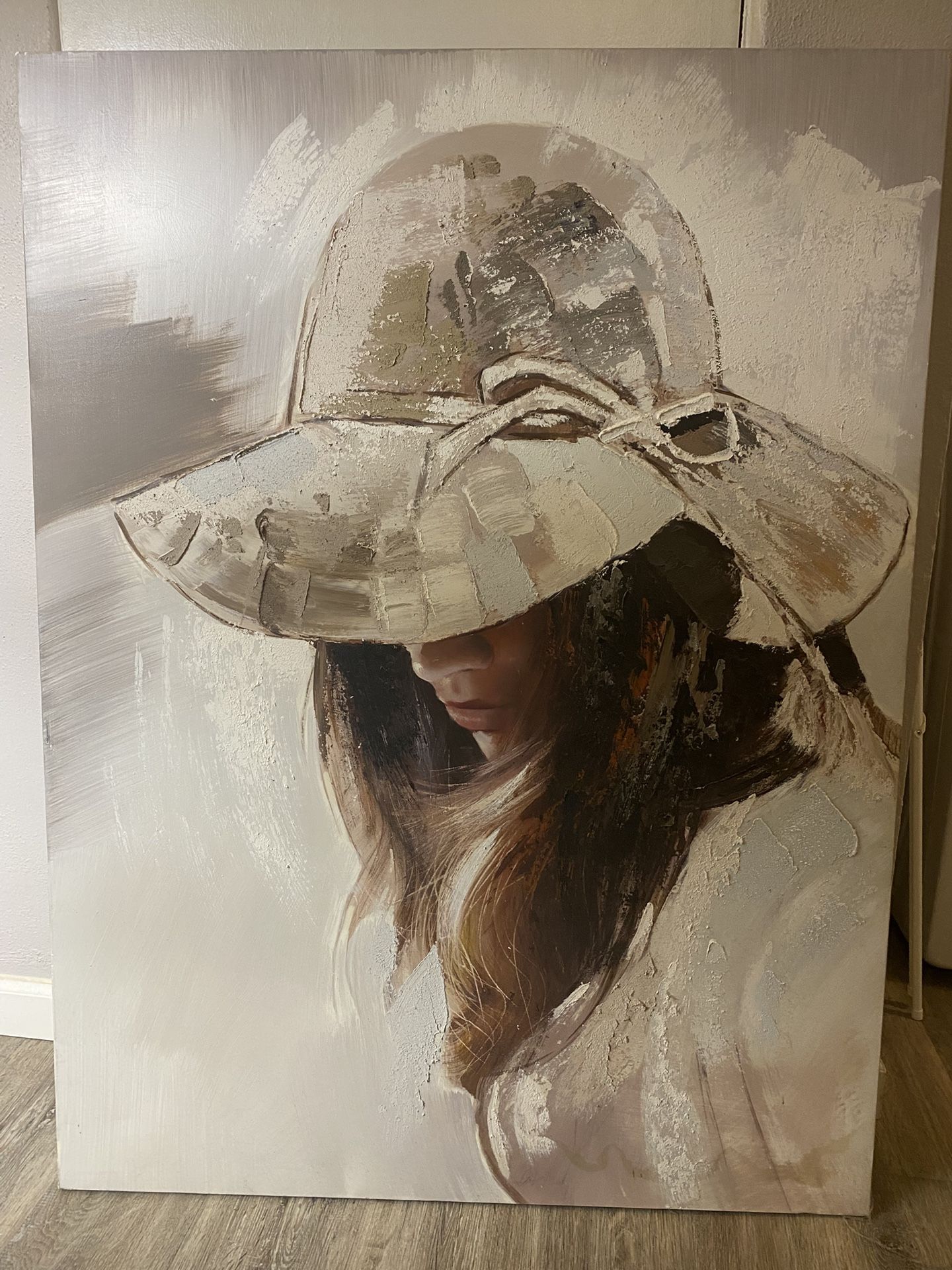 Large approximately 36” wide by 48” tall Woman in hat.