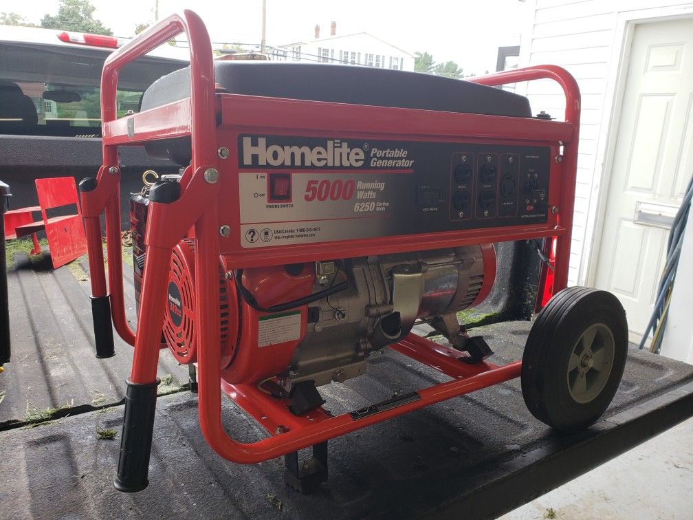 Only use for a couple of hours still like brand new 5000 WATT, 6250 STARTING WATTS, portable generator with wheel kit. SUPER CLEAN WITH OWNERS MANUAL. $350