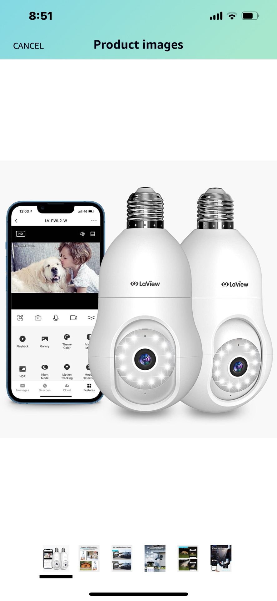 4MP Bulb Security Camera 2.4GHz,360° 2K Security Cameras Wireless Outdoor Indoor Full Color Day and Night, Motion Detection, Audible Alarm, Easy Installation, Compatible with Alexa (2 Pack)
