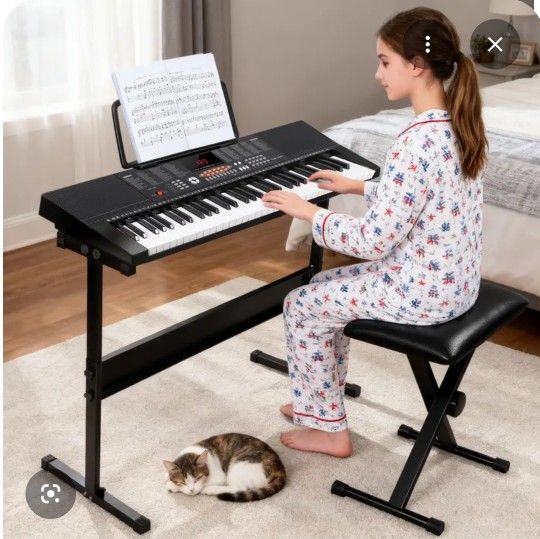 61-Key Portable Electric Keyboard Piano with Built In Speakers, LED Screen, Headphones, Microphone, Piano Stand, Music Sheet Stand and Stool