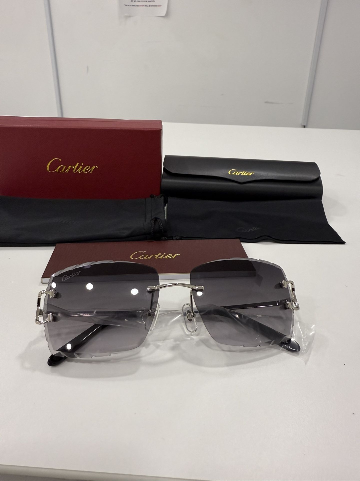 Cartier Glasses (Diamond Cut), Black Lense, Silver Frame