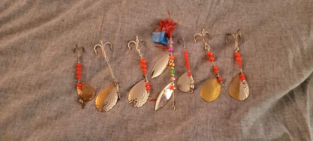 Vintage spinner lures. 2 marked Jensen. Very cool looking. Selling as a lot. 7 total.