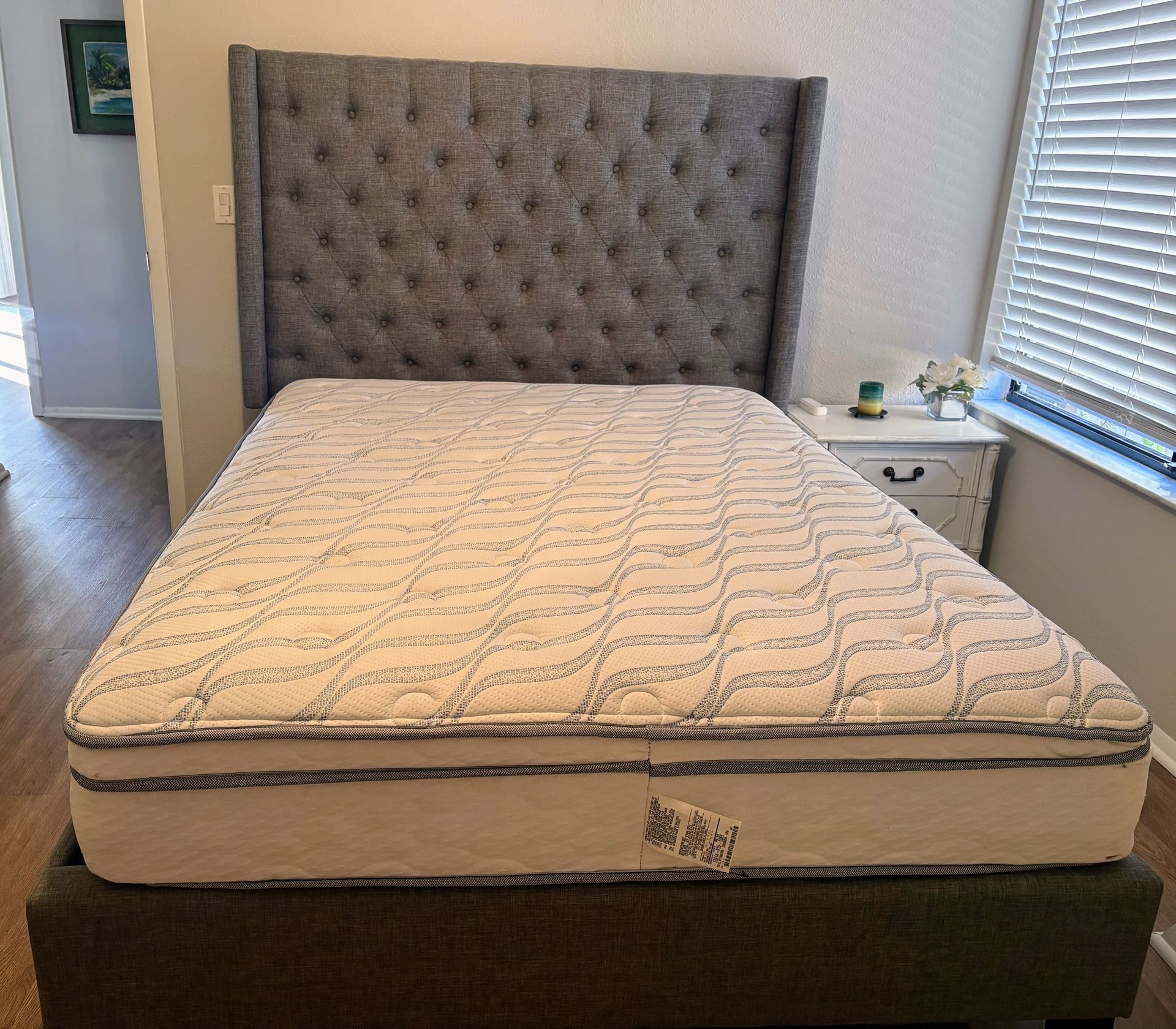 Serta Perfect Sleeper mattress and box spring, queen sized, with frame! Barely used in guest bedroom. Has been covered and protected. Like new!