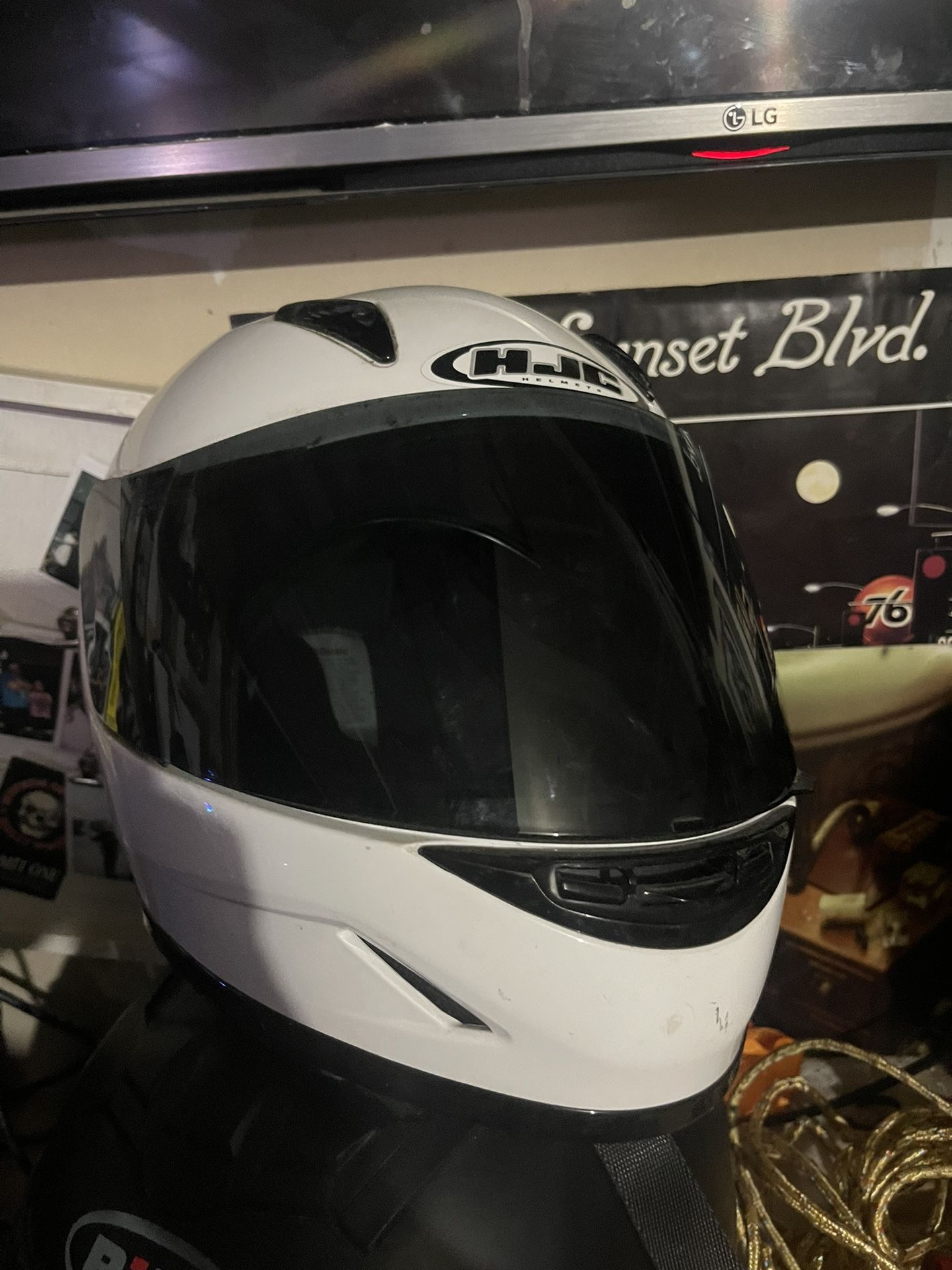 Lonely worn two times and stored. Little dusty got it fro my daughter a while back she outgrew it before we used it again asking 50 bucks come with smoke visor size youth small