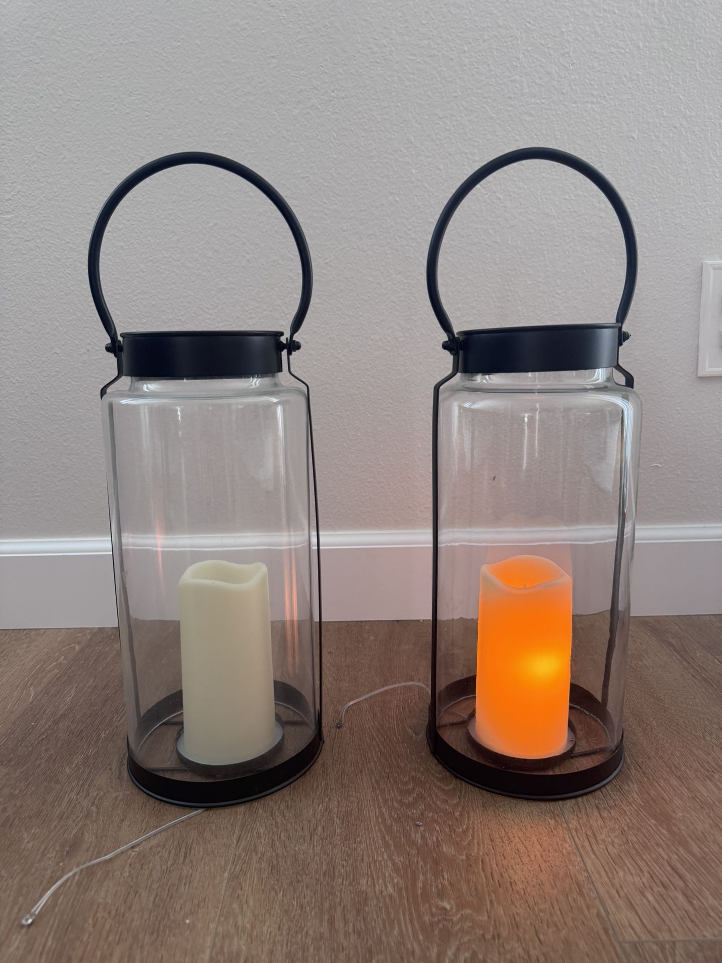 Glass candle lantern Only one candle works.