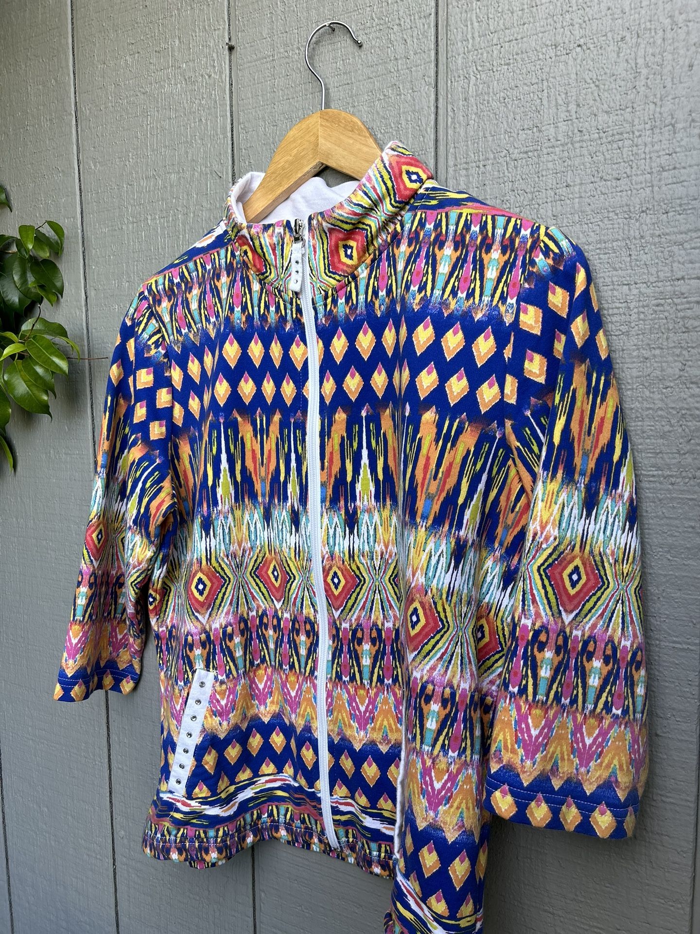 Onque Casual Petite LG Full Zip Jacket Lightweight Multicolor Long Slv Cotton