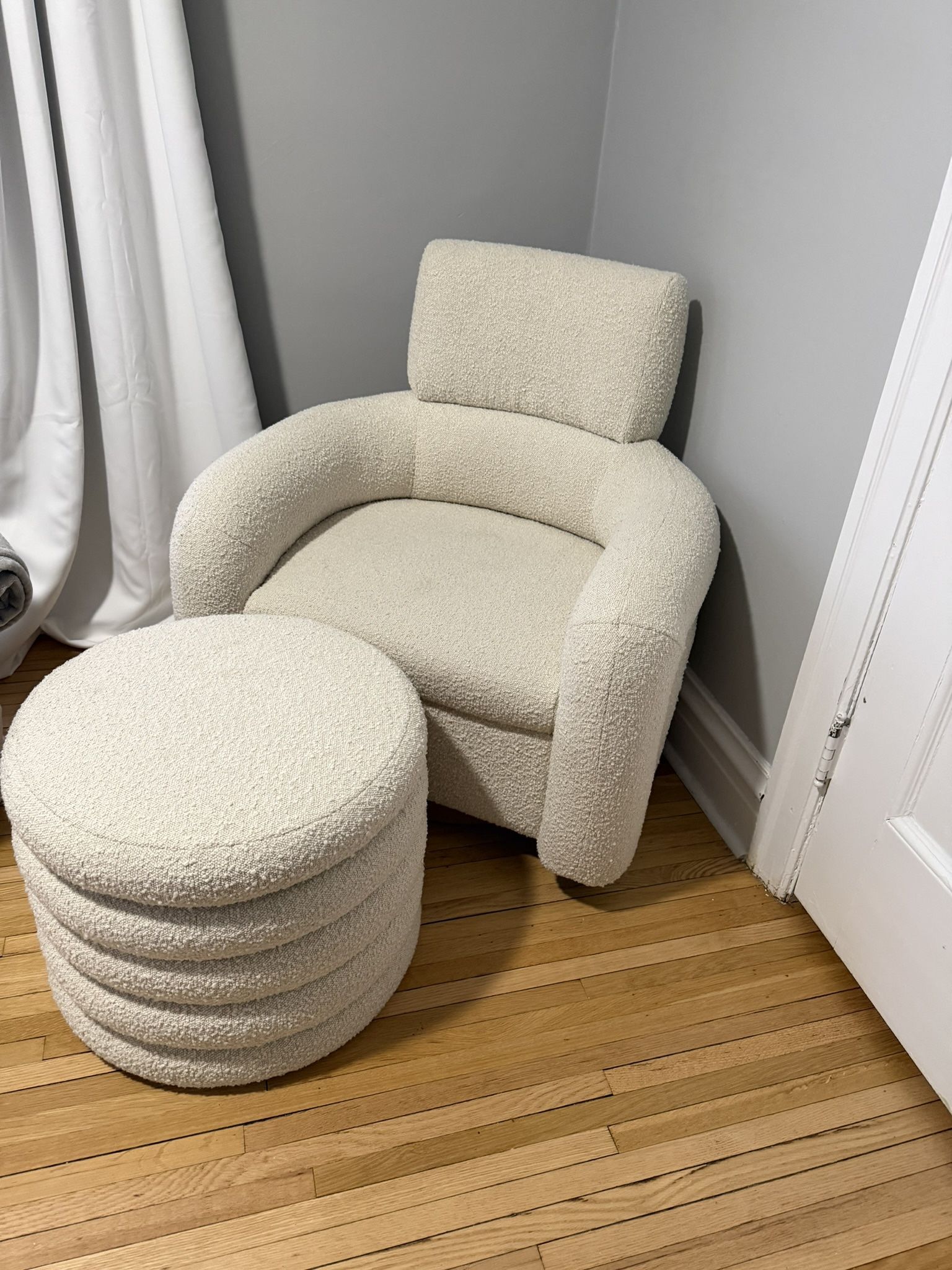 Crate & barrel nursery swivel glider and ottoman by Leanne Ford. 3 years old, like new condition. Rarely sat in/used. Retails for $1399 for chair and $499 for ottoman. Pictures from the website and current condition/home