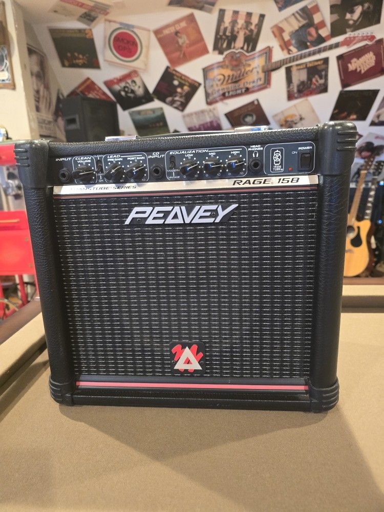 This Peavey Rage 158 1X8 15W guitar combo amp is in excellent condition and delivers powerful tone in a compact design. Featuring a 15-watt solid-state output and an 8-inch Blue Marvel speaker, it offers both clean and lead channels with a 3-band EQ for versatile sound shaping. Perfect for practice or small jam sessions, it's a reliable choice for guitarists seeking classic Peavey performance with rugged build. My husband bought this new but passed after only using it a few times. It is still in like new condition. Price is negotiable.
