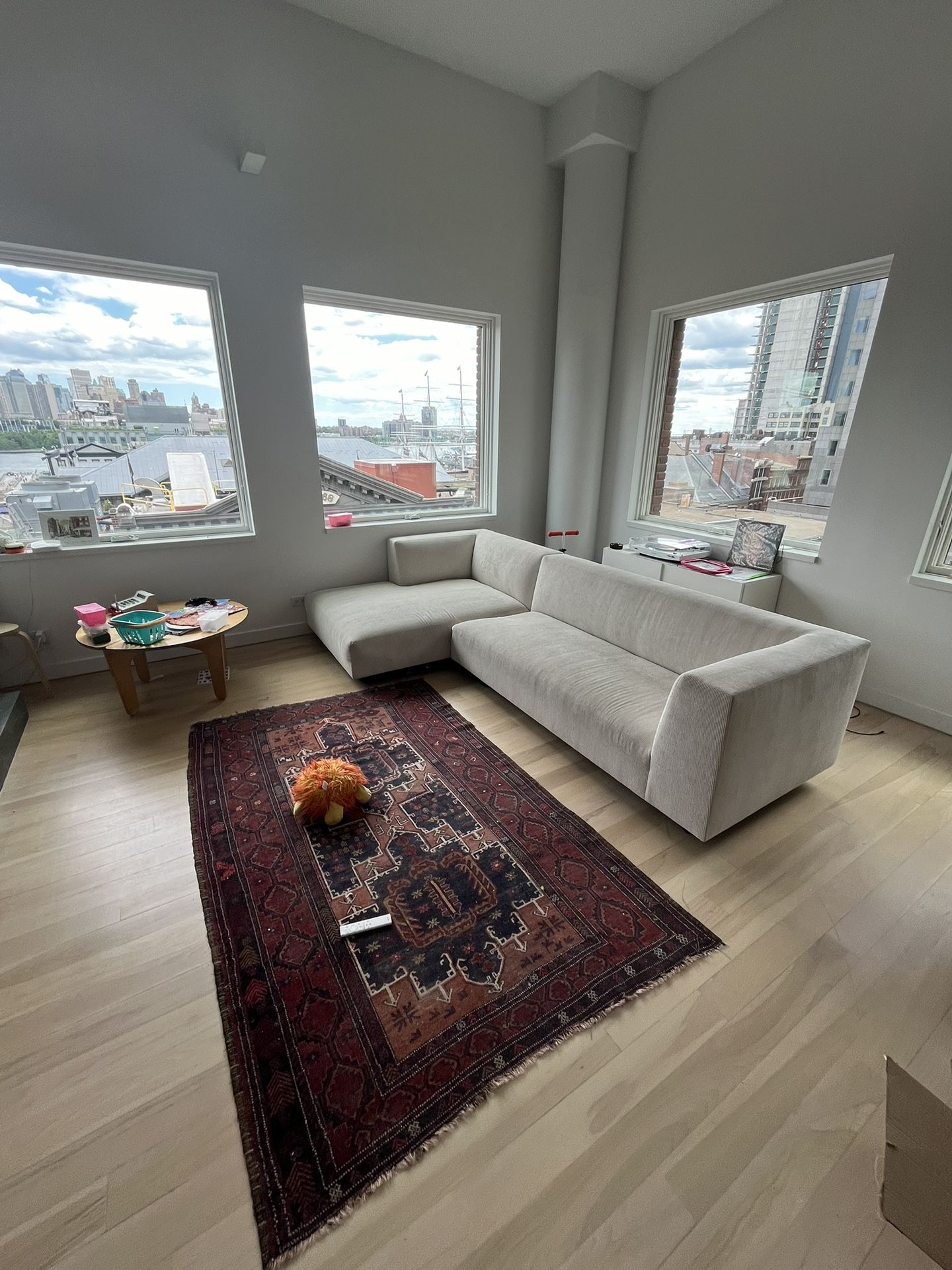 Room and Board sectional reupholstered in a very expensive stain resistant soft corduroy fabric.