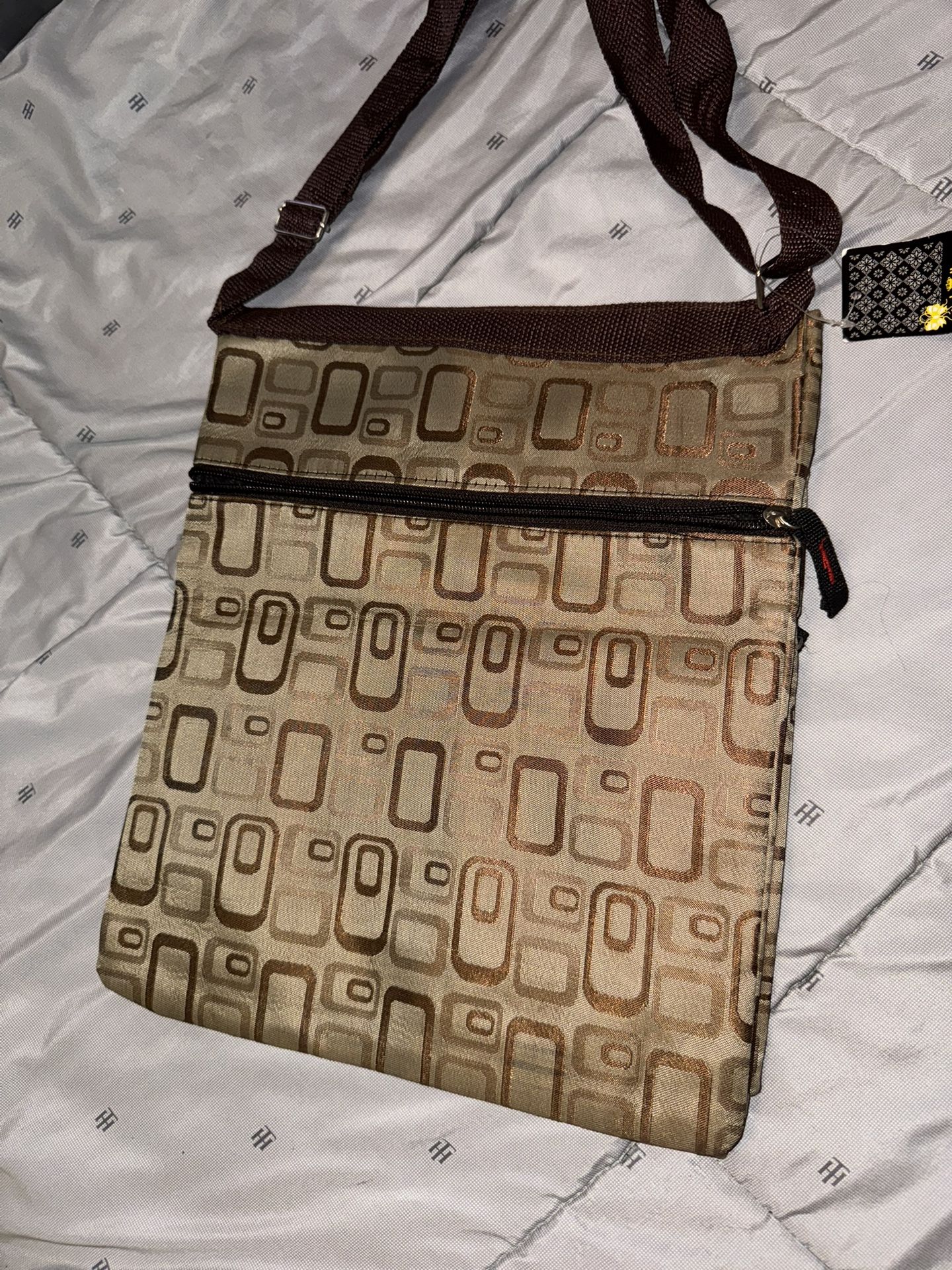 3 Zipper Brown Square Prints Messenger Shoulder HandBag Crossbody Women Bag