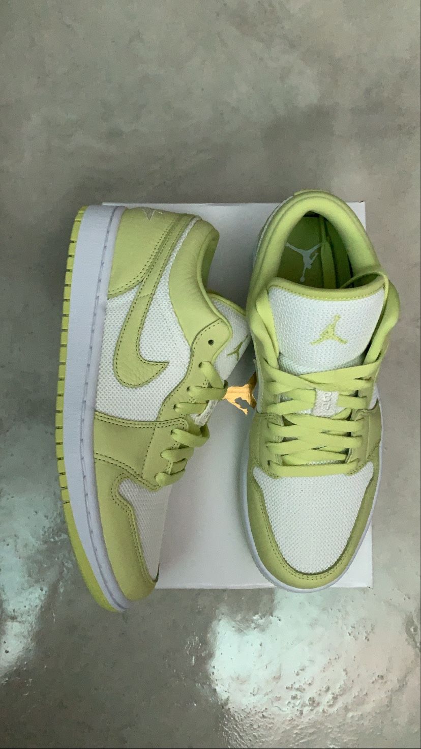 Jordan 1 low womans “limelight”🍋 Size woman’s 10 or men’s 8.5‼️ Super clean low top shoe ✅ Don’t miss out letting these go for a steal Follow my insta @skreetx This is not a ps5 or Xbox1 this is supreme air palace up Nike not Vlone or off white or dunk sb adidas Jordan 1 mid like a yeezy cpfm