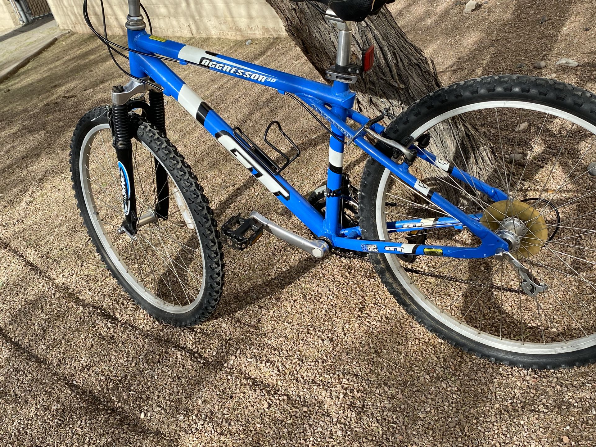 GT aggressor 3.0 mountain bike, excellent condition not all the way used, but not all the way New either excellent bike for an excellent price. The only problem is with the seat that took a little beating from the sun.