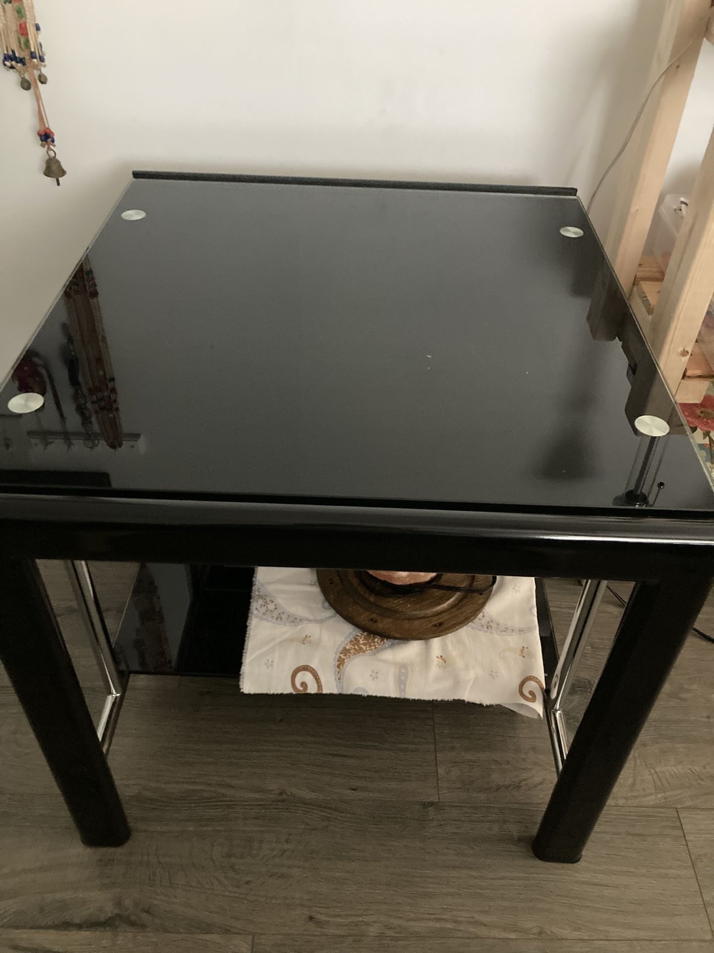 Metal and glass brand new beautiful table tampered glass with shelf 24x26” height 24” Each $35 I have 2 Incase Pick in Cary heavy duty material very cute tables