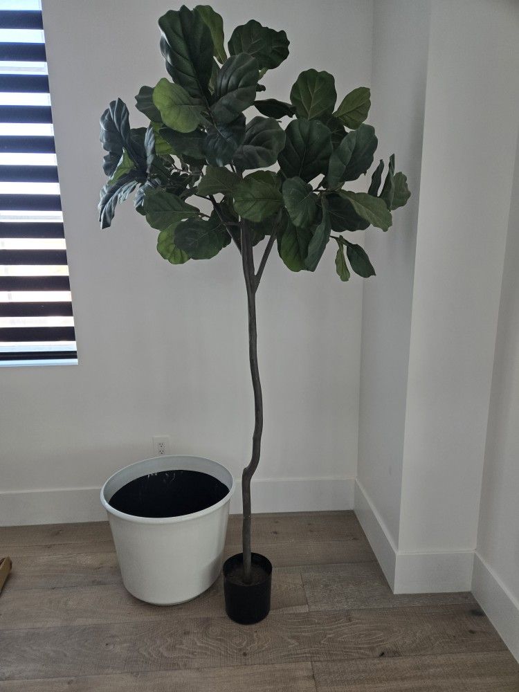 7 feet tall faux fiddle fig tree and 18" tall planter. Beautiful decor in the house. Decor room livingroom bedroom family room office