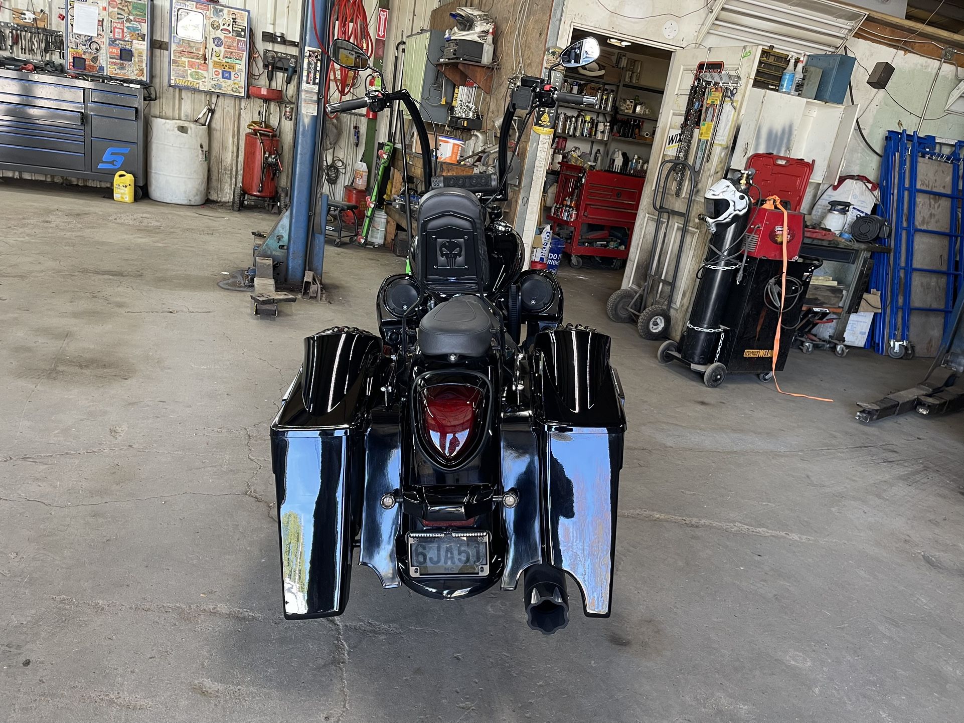 Title in hand - I don’t ride too much anymore motorcycle has very loud sound system JL and diamond audio, Harley lower faring ,18 inch ape hangers custom Harley stretched bags Mustang seat , cobra Custom, dual into one bagger brother tip exhaust kuryakyn sound bar, Baron big air cold air intake, Harley day maker headlight , extra battery in bag for sound system and much more to list in very good condition. Garage kept