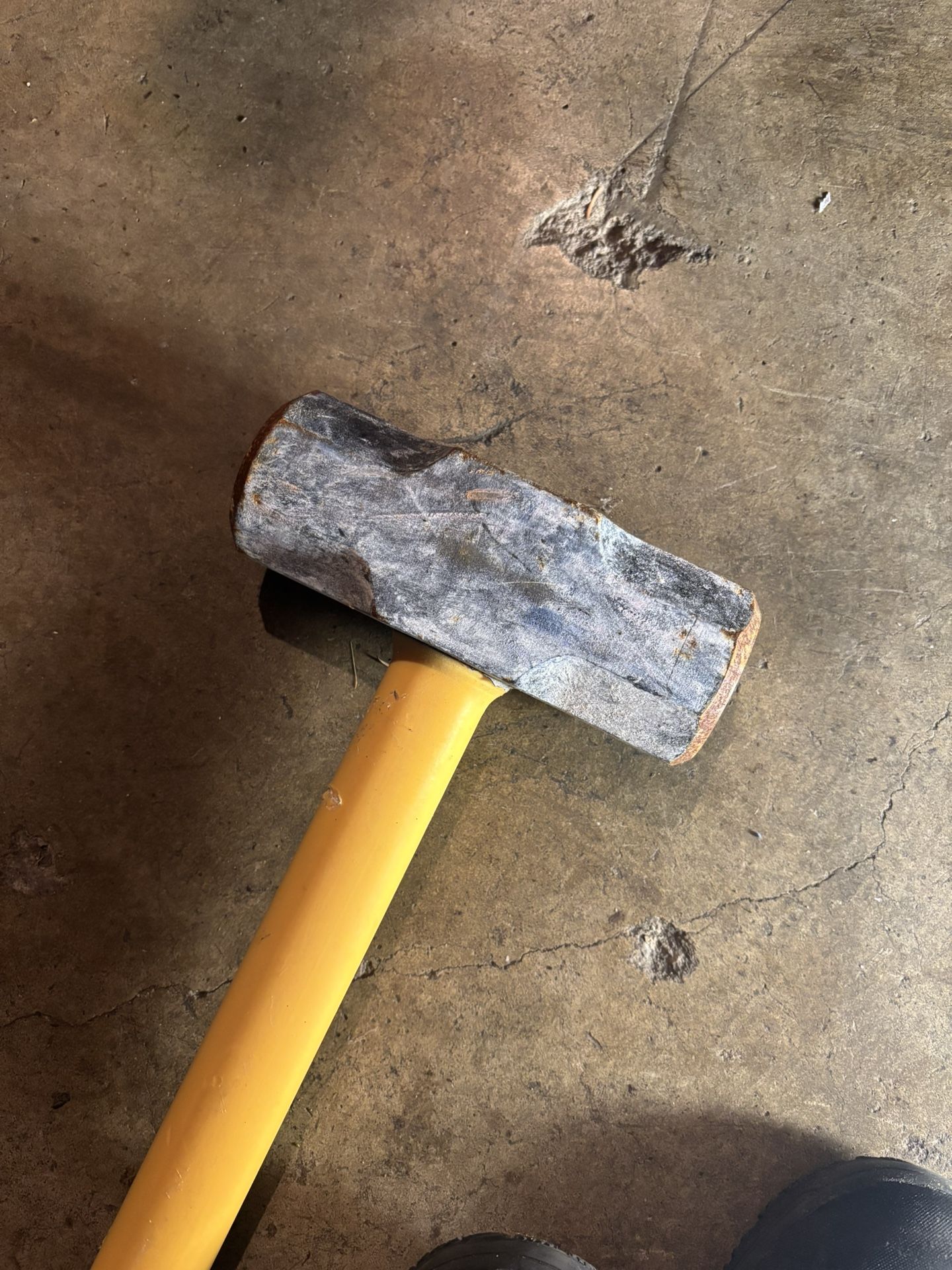 Heavy, two-handed tool with a long handle and a large metal head, used for powerful demolition, driving stakes, or breaking hard materials by concentrating force.