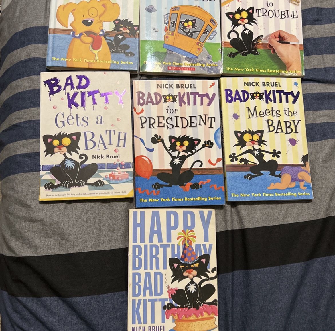 Bad kitty gets a bath, bad kitty for president, happy birthday bad kitty, bad kitty meets the baby, bad kitty drawn to trouble, bad kitty school daze, bad kitty puppy’s big day. All in good condition, great for kidsj. 40$ or best offer.