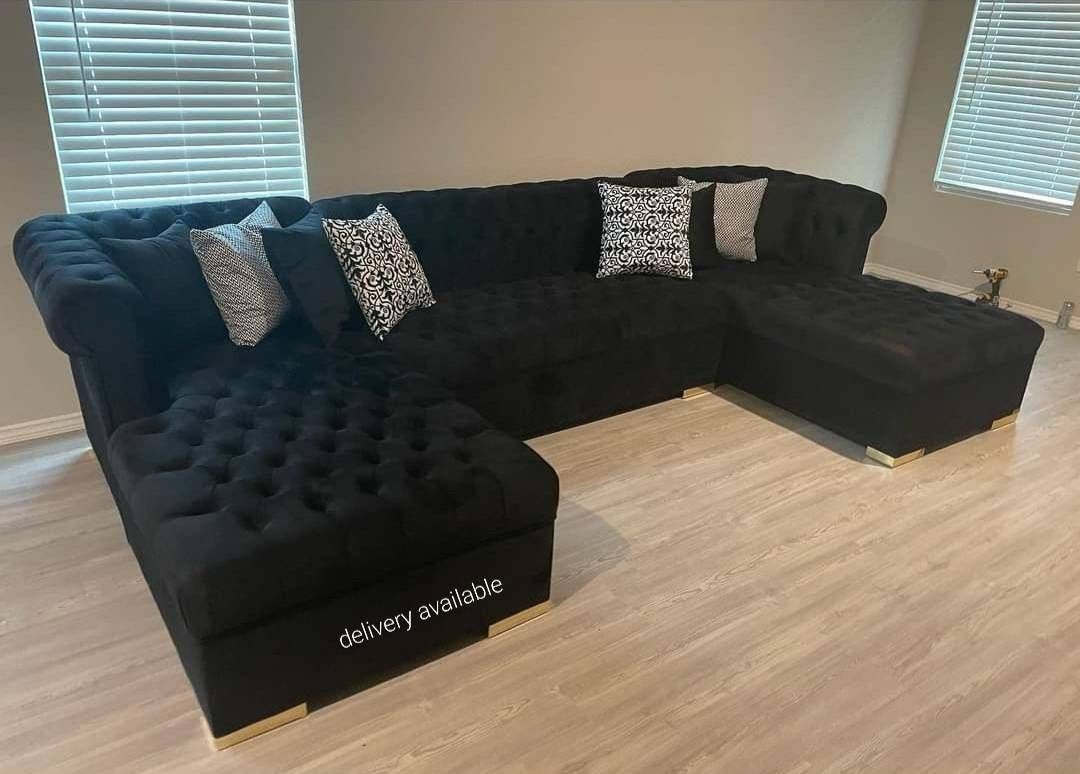 Brand New/ Black Velvet Double Chaise Sectional,Seccional, Couch/ Delivery Available, Financing Options