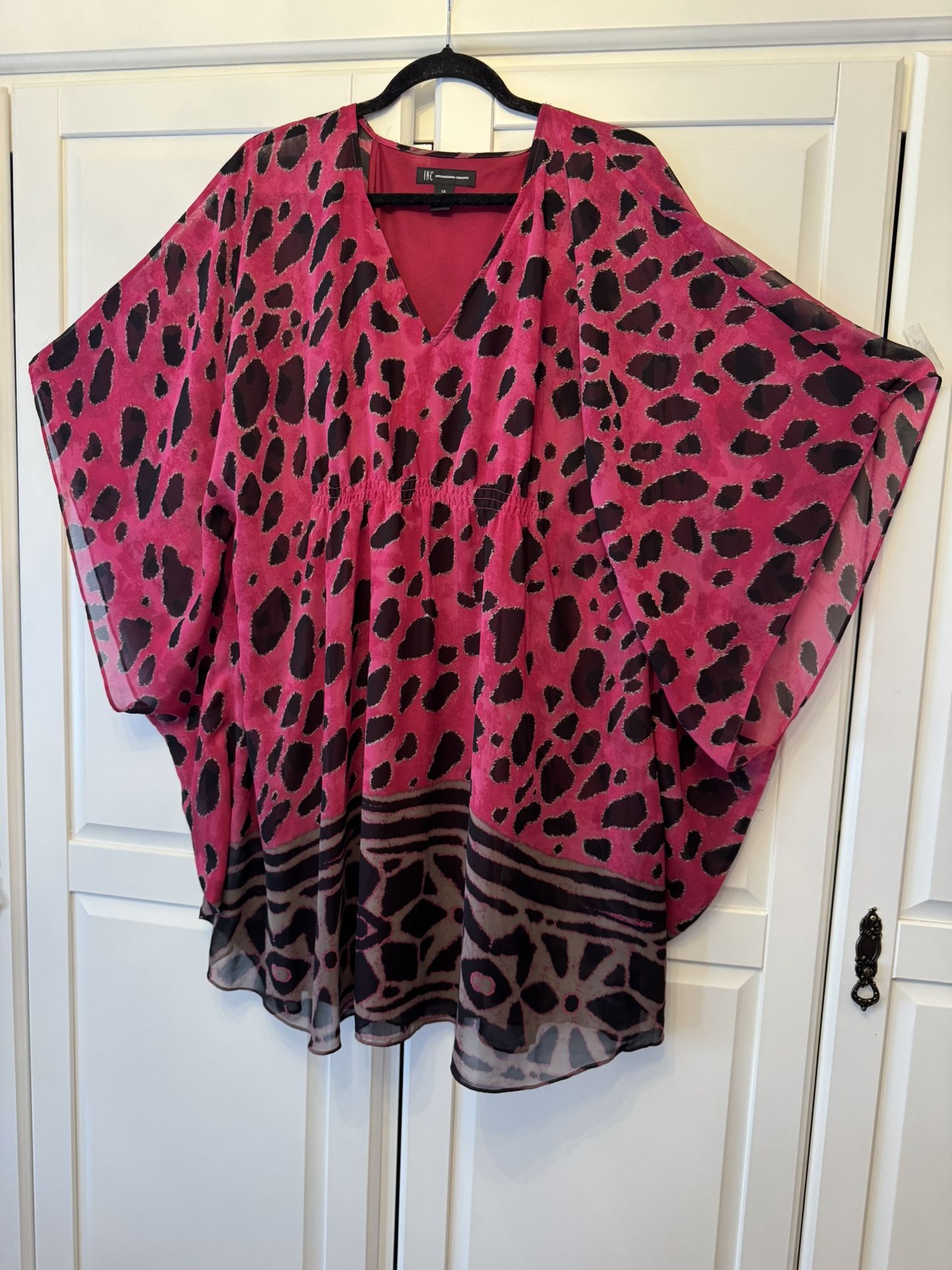 INC international concept leopard batwing Sheer Dress Sz 14