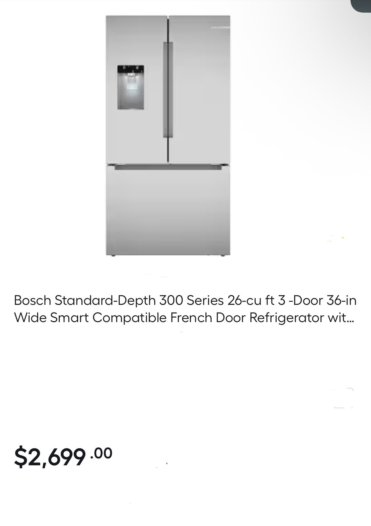 Bosch Standard-Depth 300 Series 26-cu ft 3 -Door 36-in Wide Smart Compatible French Door Refrigerator with Ice Maker with Water and Ice Dispenser ( Stainless Steel ) ENERGY STAR Certified