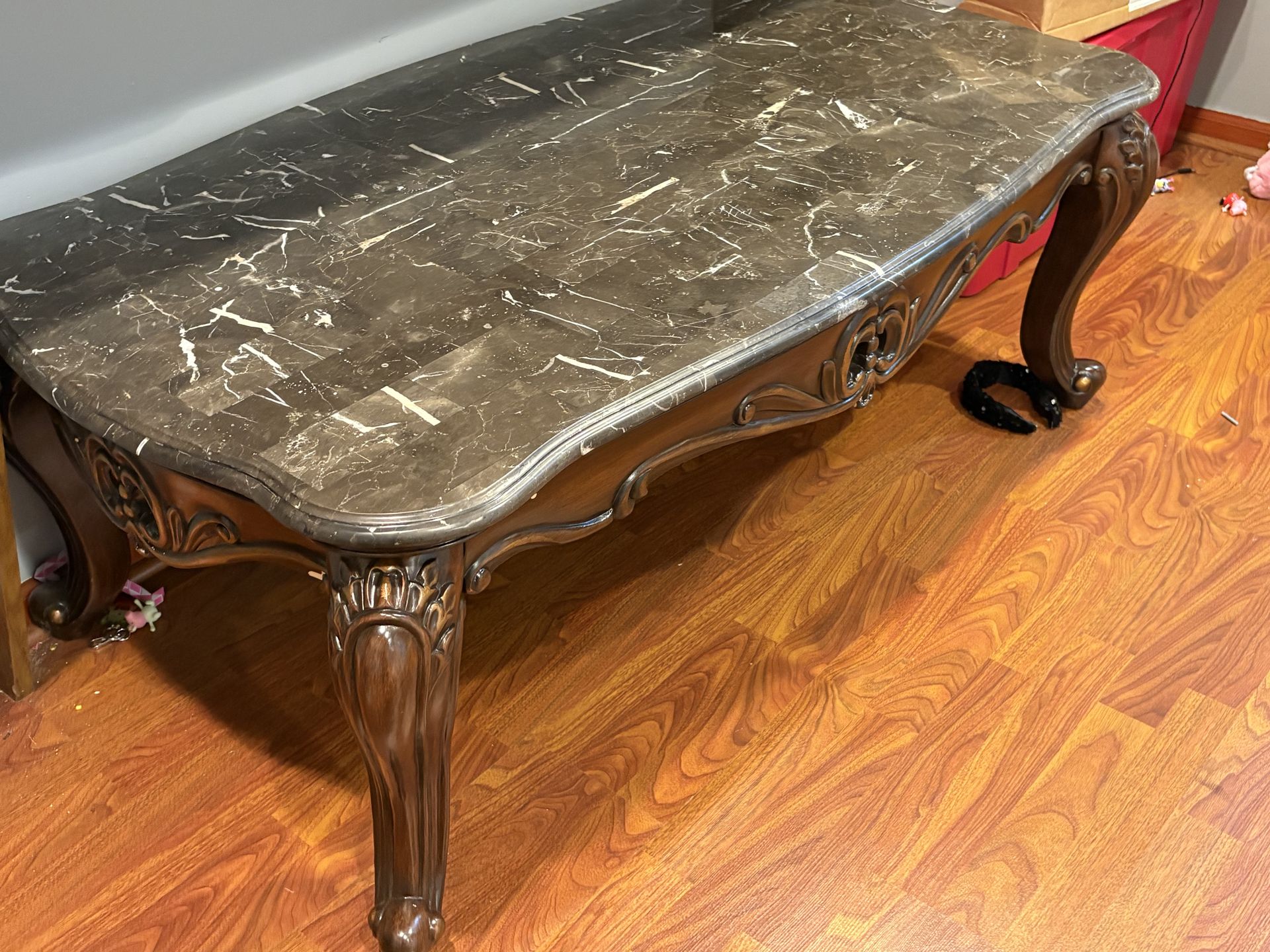 Original Marble original wood coffee table.