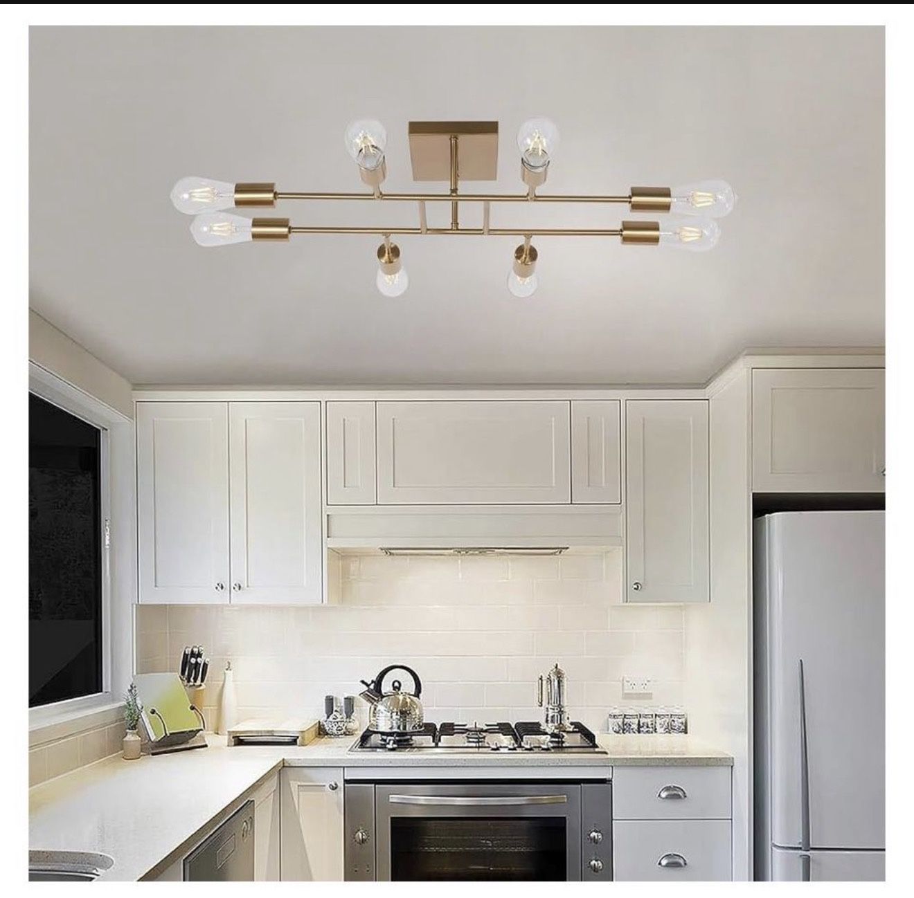 Dimmable Mid Century Modern Ceiling Lighting Brushed Brass 8 Light kitchen light fixtures for Dining Room Bed