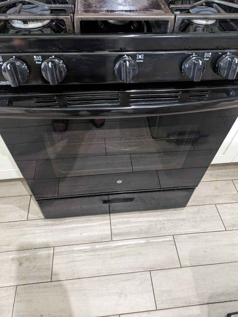 Purchased 3 yrs ago. Works like day one. Only selling cause wife wants stainless steel appliances now. Pretty clean just normal wear and tear. A deep cleaning can make it look almost brand new. Setup as propane but has conversion kit so you can put back to natural gas if needed. Model JGBS66DEKBB. Obo