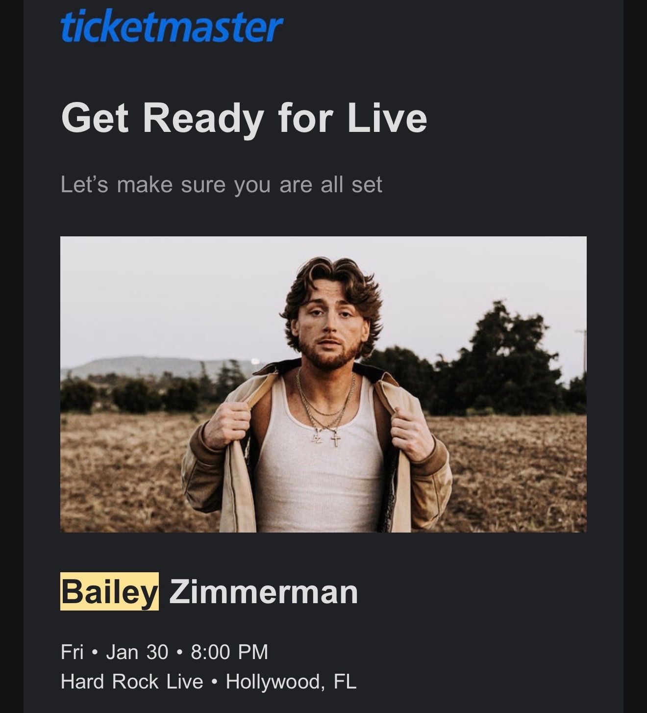 2 tickets to Bailey Zimmerman at the Hard Rock Hotel. January 30th, GA Pit seats, $250 each