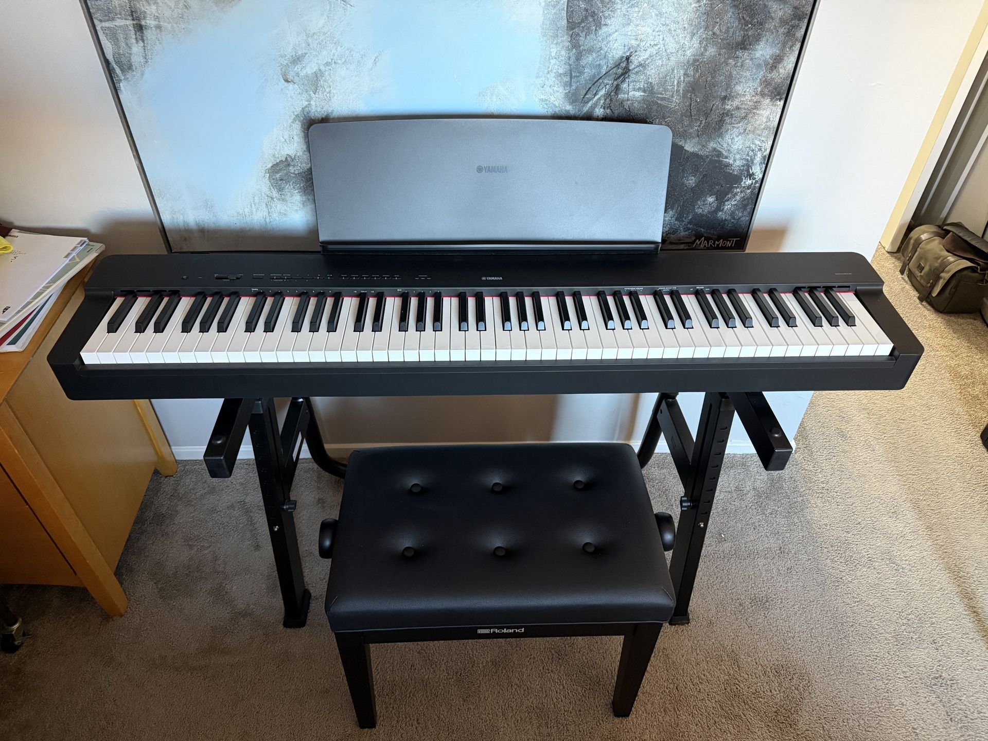 Complete Professional Piano Setup - Barely Used (Played <5 times) Condition: Open Box / Like New Description: Selling a complete digital piano setup. I bought this brand new recently but have only played it about 5 times. Everything is in mint condition with absolutely no scratches or wear. This isn't a starter bundle with cheap accessories; it comes with professional-grade gear that is sturdy and comfortable. Includes: • Yamaha P-225 Digital Piano: 88 weighted keys (GHC action) that feel like a real acoustic piano. Compact design and excellent sound quality. Includes original power supply and music rest. • Roland Adjustable Bench: High-quality, padded bench with height adjustment. Much more stable and comfortable than standard fixed benches. • QuikLok Z-Stand: Heavy-duty "Z-style" stand. This offers way more legroom and stability than the cheap "X-stands" you usually see. Value: Retails for over $1,000 + tax if bought separately. • Yamaha P-225: ~$750 • Roland Adjustable Bench: ~$160+ • QuikLok Stand: ~$100 Asking: $700 (Or Best Offer) Terms: • Cash or Venmo/Zelle preferred. • Pick up only in [Insert Your Neighborhood/City]. • Serious inquiries only, please.