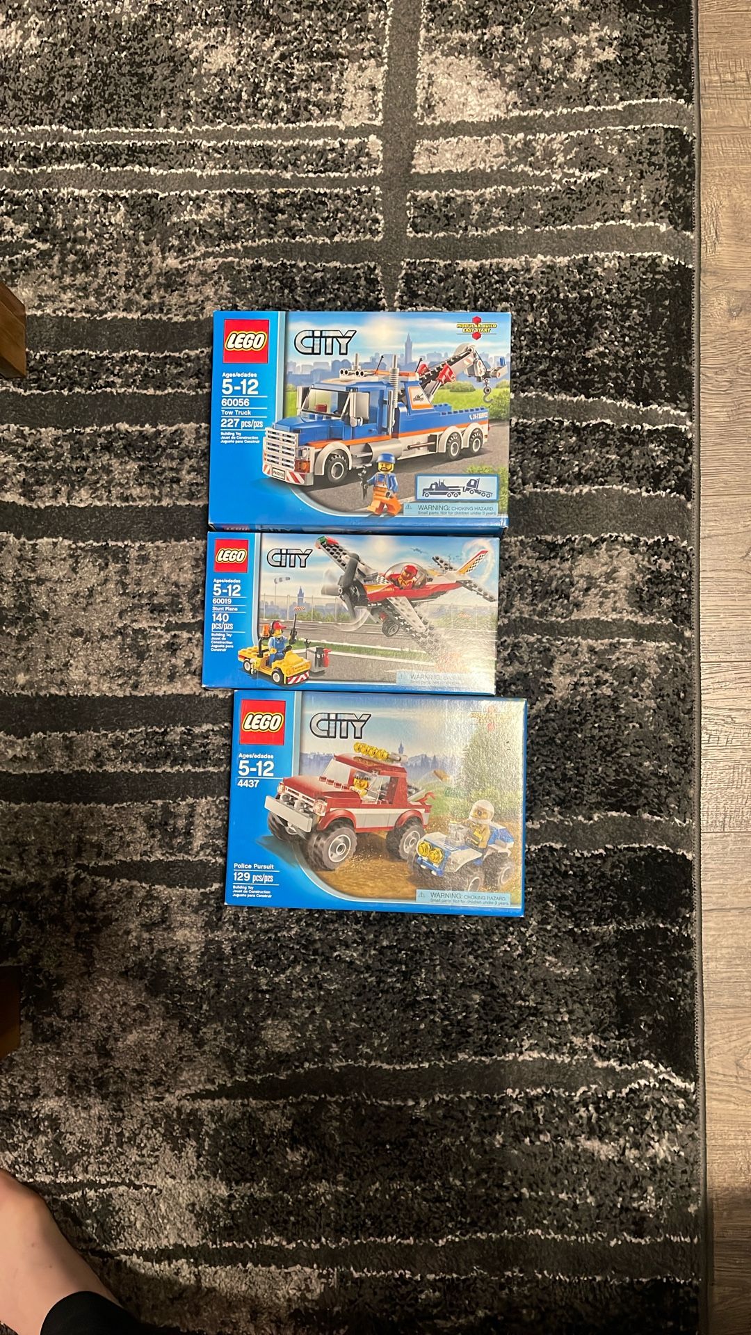 Individual price listed or discount price of 200 for all Lego city stunt plane 35. Lego city police pursuit 35 Lego city tow truck 150 All are brand new factory sealed In Tacoma by hwy 7 & 512 Can meet at dollar tree 9830 pacific ave Tacoma 98444