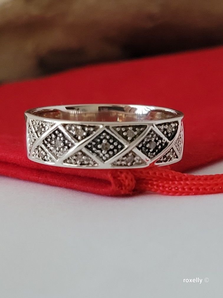 ❤️925 Size 8 Precious Sterling Silver Genuine Diamonds Band Ring!/ Anillo de Banda de Plata Esterlina con Diamantes! 👌🎁Post Tags: Anillo de Plata