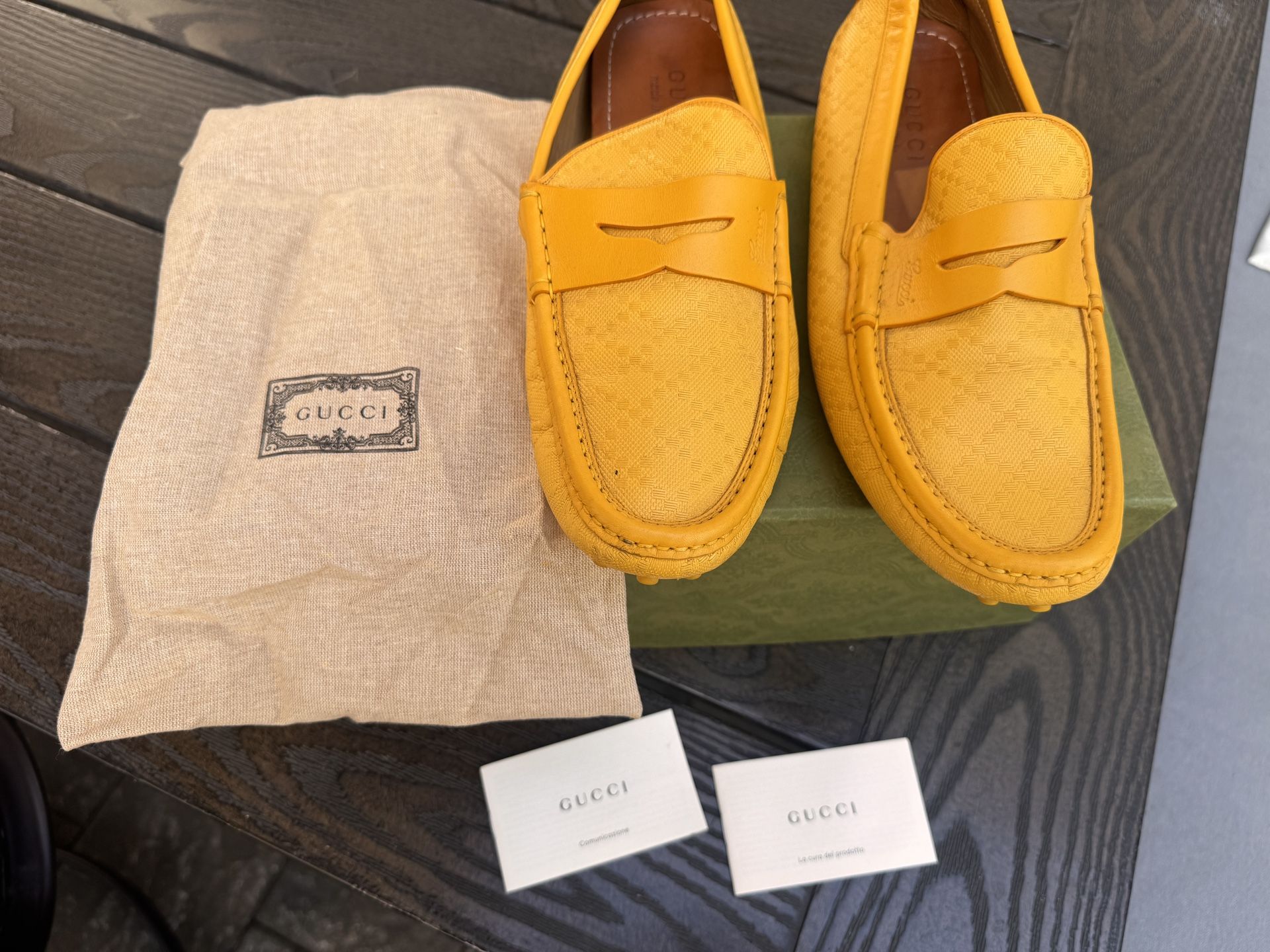 Gucci Men's 7.5 Yellow Leather GG Logo Driving Loafer Moccasin