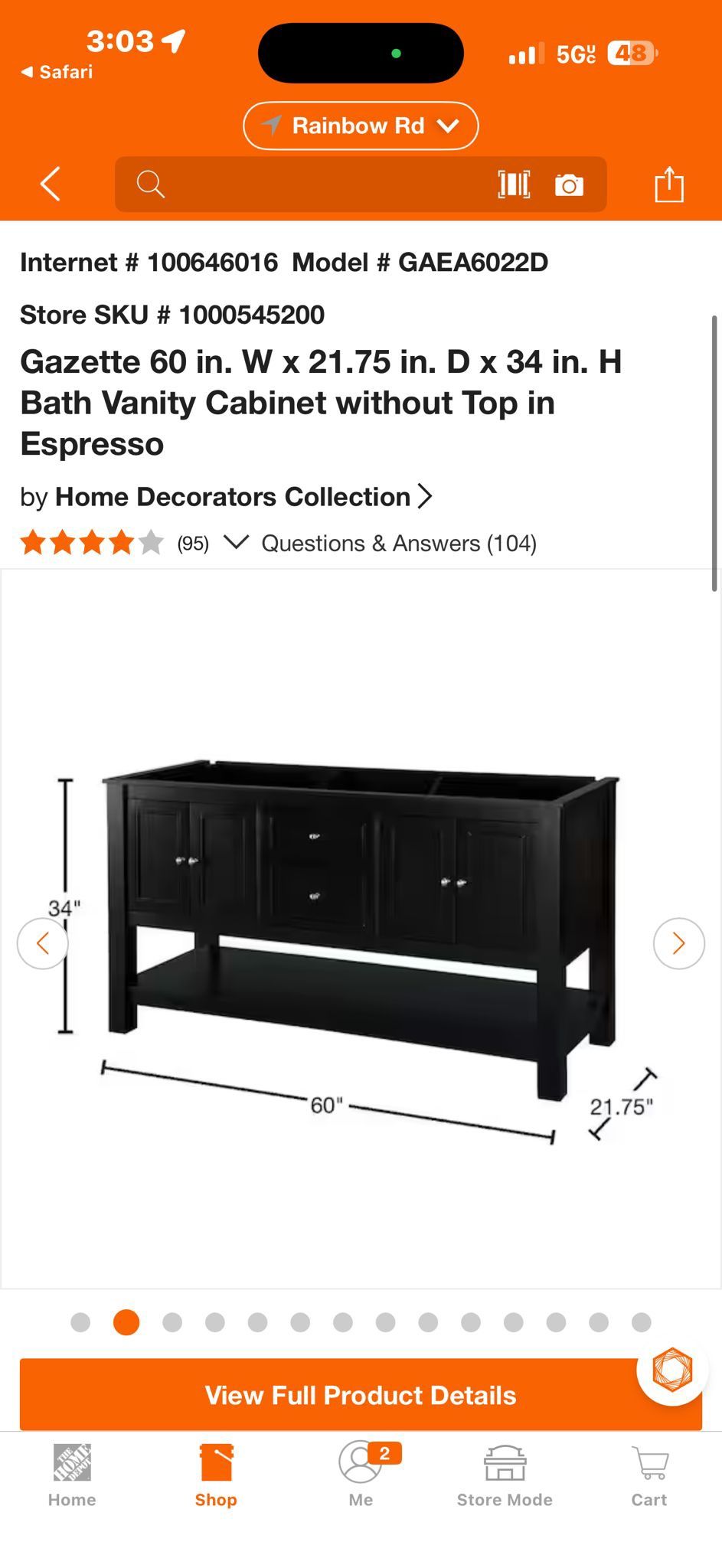 Gazette 60 in. W x 21.75 in. D x 34 in. H Bath Vanity Cabinet without Top in Espresso