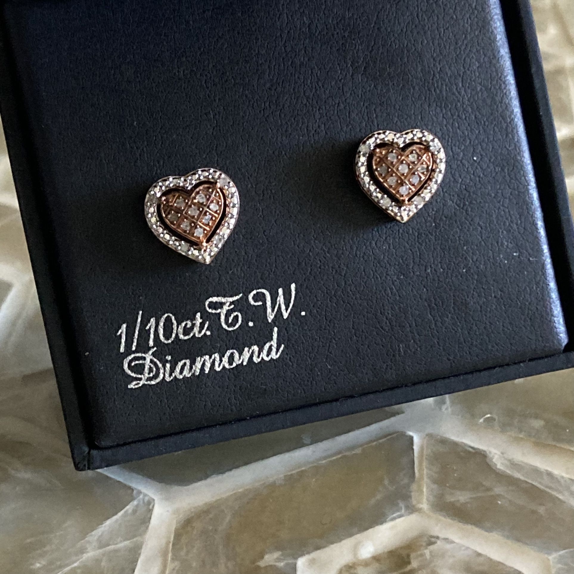 Sterling Silver, 925 parts per 1000. any Occasion. Main Stone Shape. Total Carat Weight is 1/10 ct. Light wear to box. Earrings are brand new, never worn & retail at $105! Don’t miss them!