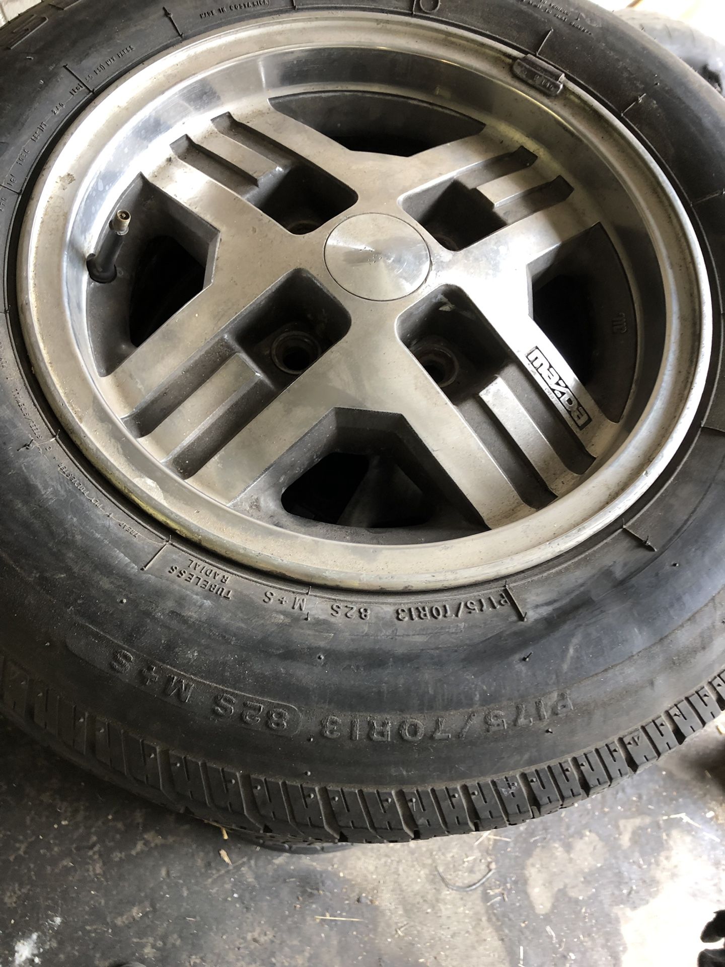I have 5 wheels 13” Mazda Rx7 wheels in very good condition the tires are in good condition $500