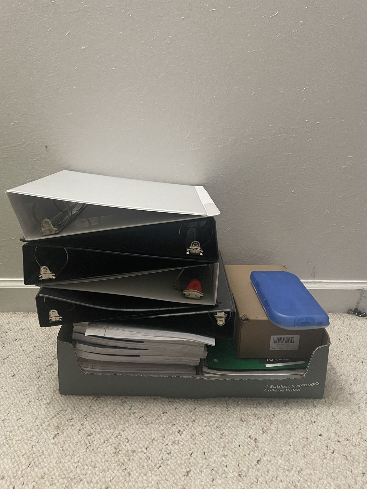 Roughly 6 Binders, at least 8 packs of ruled paper and at least 5 notebooks