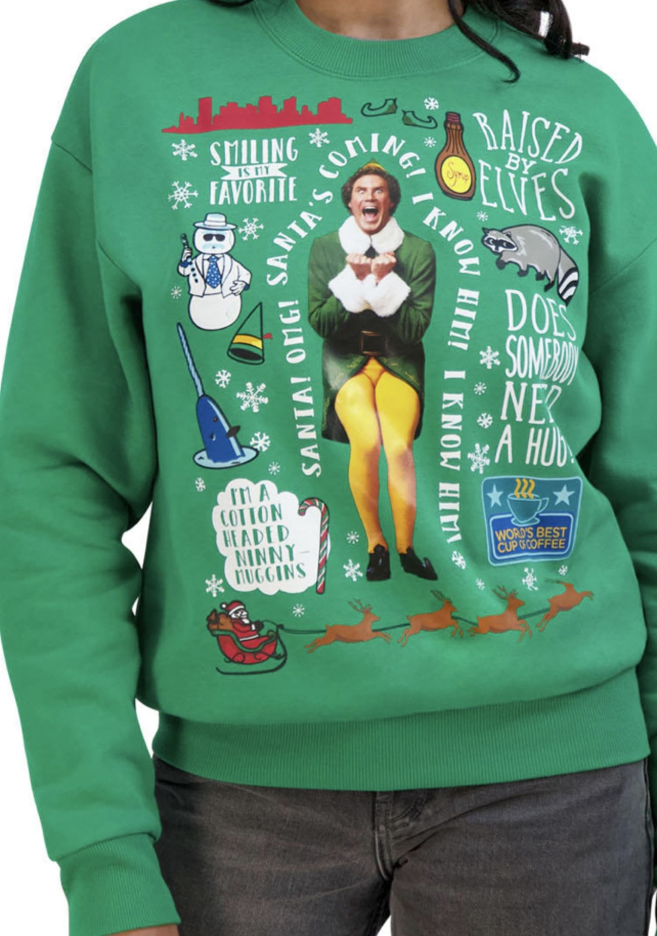Brand New Adult Licensed Elf Talking Sweatshirt Christmas