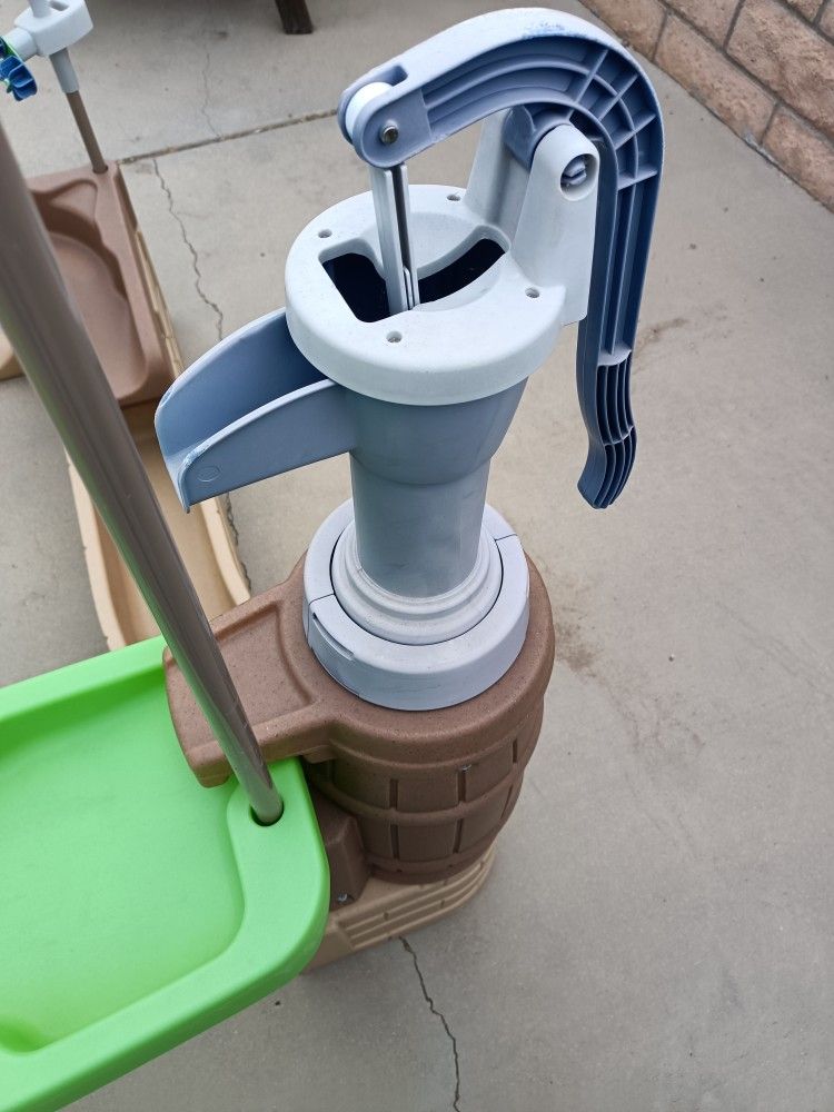 Step 2 water Play used condition durable plastic with some markings Used condition Description The Pump & Splash Shady Oasis is an outdoor water activity center packed with tons of water play stations to explore! The pavilion style design encourages little ones to explore and discover water play through lots of fun activities. Fill the large water reservoir - it holds up to 7 gallons (26.5 L) of water - and get the water flowing with the working water pump. Kids can enjoy activities like the corner mounted water maze funnels teeters and spinners! No day of play will ever be the same with the engaging water play fun at every splash and sprinkle in the Pump & Splash Shady Oasis! Made in the USA of US and imported parts. Product SKU: 421400 Assembled Dimensions: 39" Height x 47.5" Wide x 47.5" Deep Endless Water Play Includes a water pump, 3 troughs, and removable dam pieces Splash, Pour & Learn Early physics concepts and cause and effect STEM learning are present with water play Collaborative Play The large, open design provides plenty of room for kids to play and explore together Low Threshold The hinged bridge and low threshold allow for easy, wheelchair friendly access Non Leak Plug This water sensory activity will keep toddlers and children entertain for hours Designed to last Five star seller. Pet and smoke free. Please see my other listings to bundle and save. Offers welcome! Tag - outdoor backyard play time play house playground kids Fun child children kid outside outdoors active activity pretend imagine imagination toy pretend 40